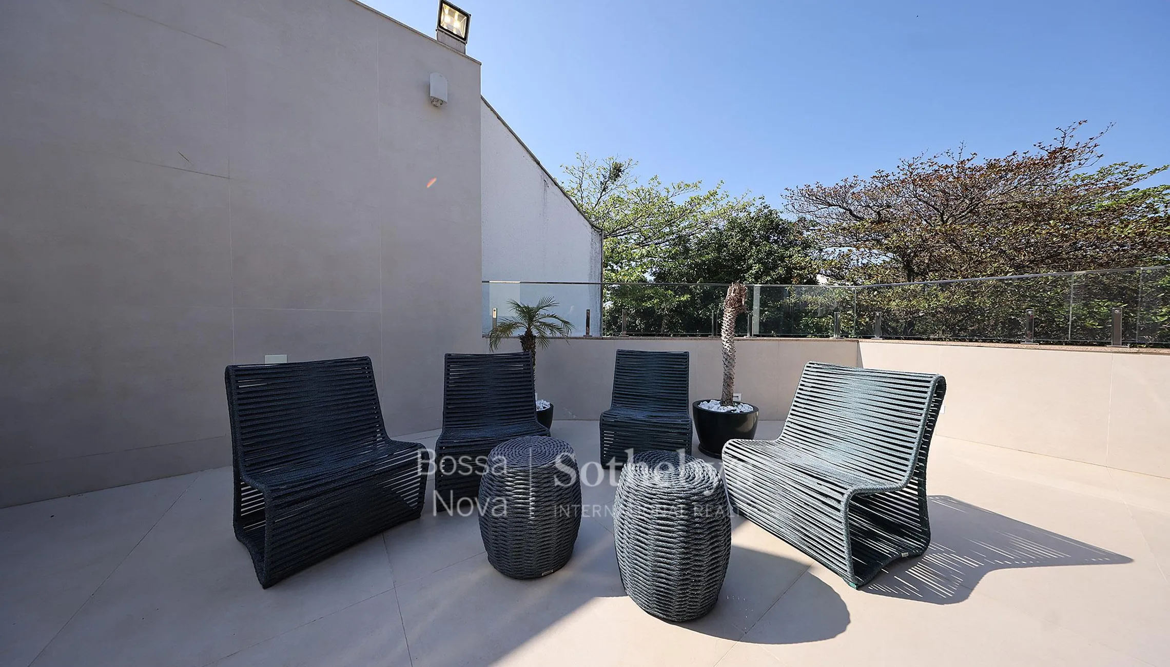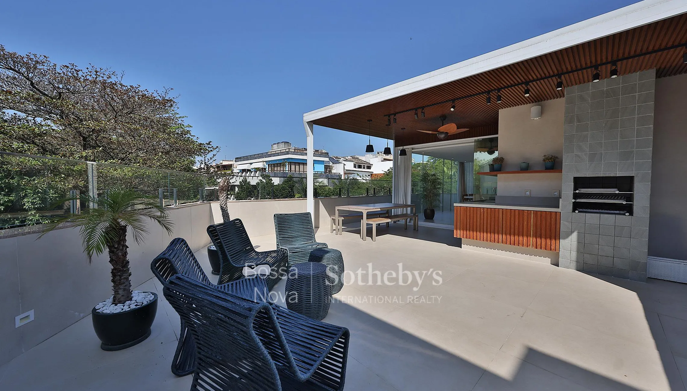 Localizada no Jardim Oceânico, esta cobertura linear dispõe de ambientes amplos e integrados, incluindo living com múltiplas configurações e lavabo. A varanda envidraçada conecta-se à área externa, onde estão a piscina, o espaço gourmet coberto com churrasqueira e um banheiro de apoio. A planta conta com quatro suítes, sendo a principal com closet, além de copa-cozinha, lavanderia e dependência de serviço. A cobertura conta ainda com sistema de aquecimento solar instalado no telhado e marcenaria planejada da FAVO nos dormitórios e na cozinha.