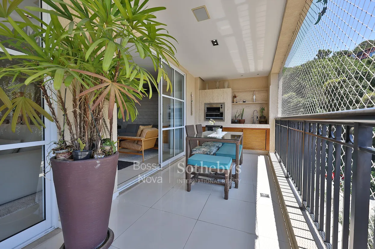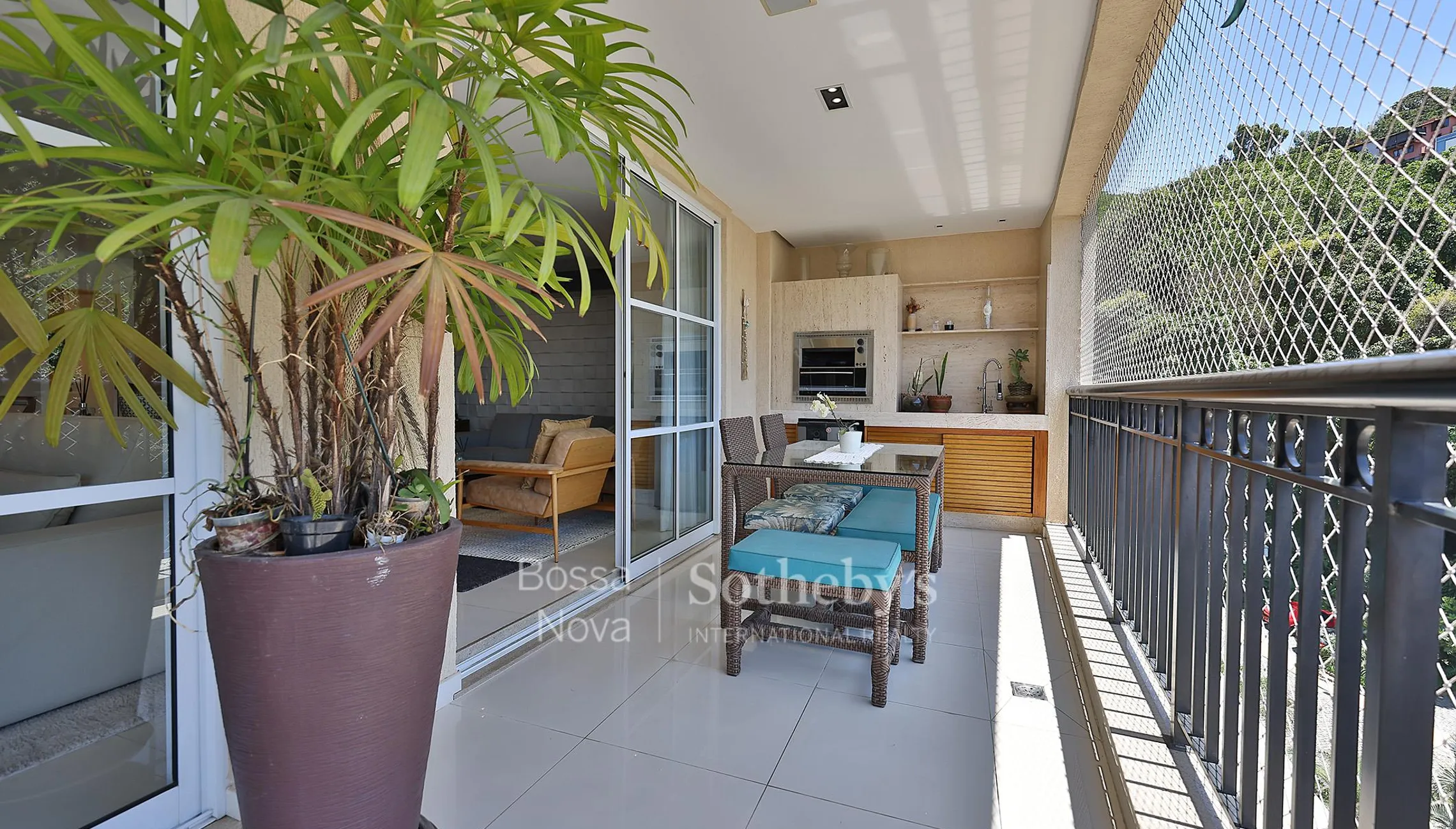 Este apartamento reformado está situado em um condomínio de Botafogo que oferece infraestrutura completa de lazer e segurança. Os ambientes são claros e ventilados, com incidência de sol pela manhã. A área social é composta por um living amplo distribuído em três ambientes, integrado a um terraço com bancada e apoio para refeições, além de lavabo. A cozinha possui copa, área de serviço iluminada e ventilada e dependência completa. Na área íntima, há quatro suítes, duas delas com sacada, todas com marcenaria planejada. O condomínio oferece salão de festas, cinema, sala de jogos, brinquedoteca, academia equipada com salas de spinning, dança, luta e yoga, piscina de raia aquecida, sauna, trilha e quadra poliesportiva. A segurança conta com portaria vinte e quatro horas e monitoramento, e o imóvel dispõe de três vagas de garagem, sendo duas internas e uma descoberta.