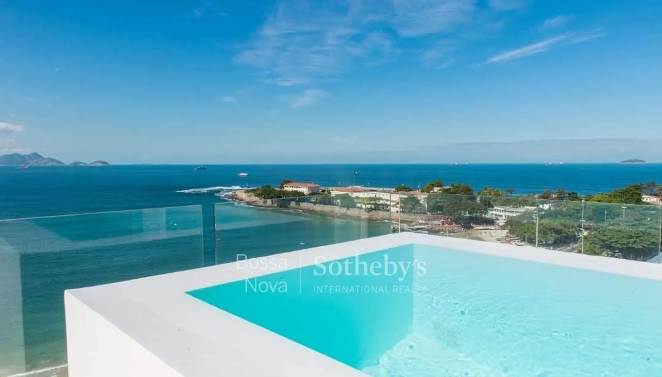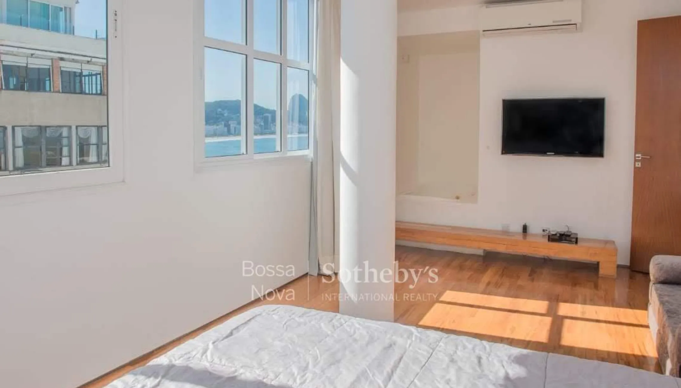 Cobertura duplex reformada por arquiteta, com vista panorâmica. O primeiro piso conta com living para vários ambientes, sala de jantar, lavabo, uma suíte máster com closet, copa-cozinha planejada, área de serviço e dependência de funcionária completa. Acesso ao segundo piso por escada linear, sala de estar, lavabo, duas suítes, sendo uma com closet e área de lazer com piscina e vista para a praia de Copacabana. Prédio com uma vaga e portaria 24 horas.