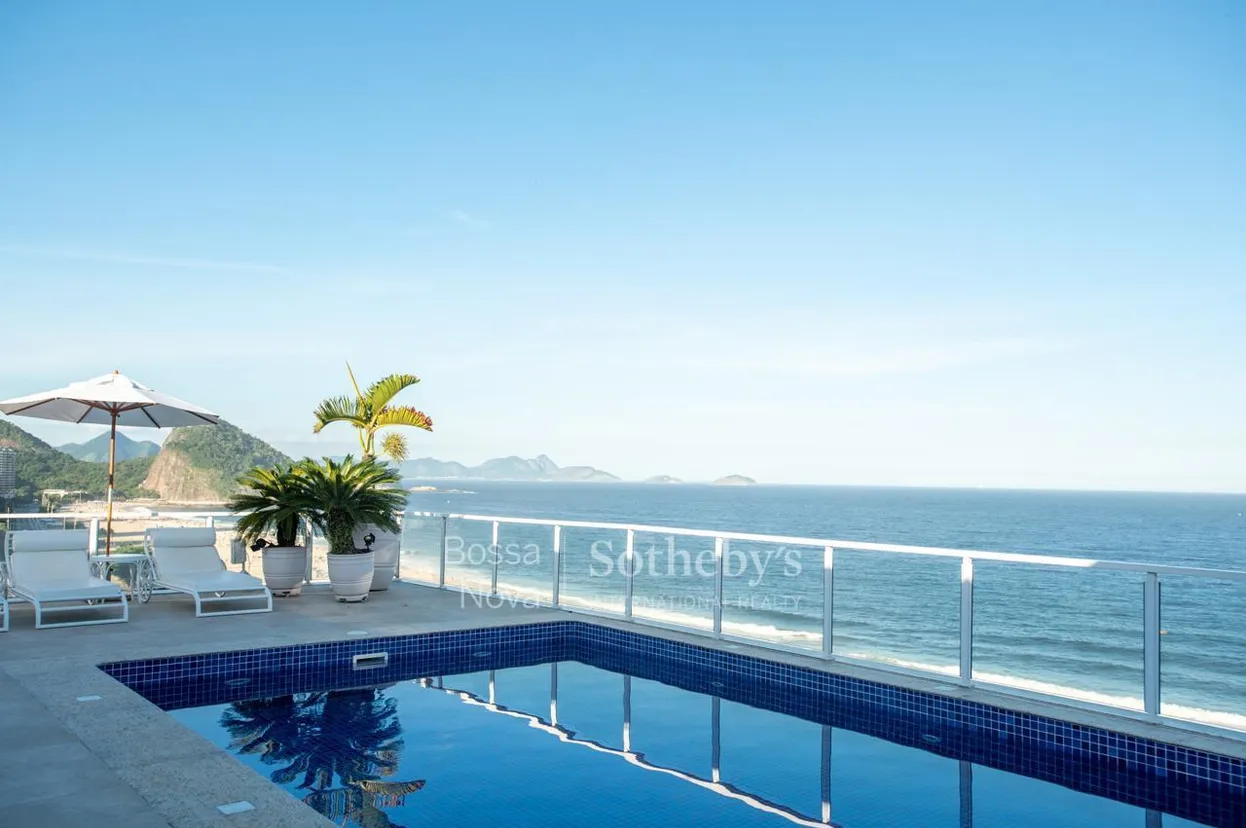 Localizada na Avenida Atlântica, ao lado do icônico Copacabana Palace, esta cobertura tríplex oferece uma das vistas mais privilegiadas do Rio de Janeiro, abrangendo toda a orla de Copacabana, do Leme ao Posto 6. No primeiro piso, um hall privativo conduz a um amplo salão distribuído em três ambientes, com piso em mármore e iluminação natural, além de lavabo, três suítes confortáveis, copa e cozinha planejada. A área de serviço conta com duas dependências de apoio. O segundo piso abriga uma sala de estar espaçosa, duas suítes adicionais, escritório e cozinha de apoio. A varanda circunda o pavimento, com um delicado jardim que emoldura a vista para o mar. No terceiro piso, um terraço generoso integra piscina, área gourmet com churrasqueira e ambientes perfeitos para convivência e contemplação. O edifício, reconhecido pela elegância e tradição, oferece portaria e segurança 24 horas, e o imóvel dispõe de três vagas na escritura, com possibilidade de locação de duas vagas adicionais.