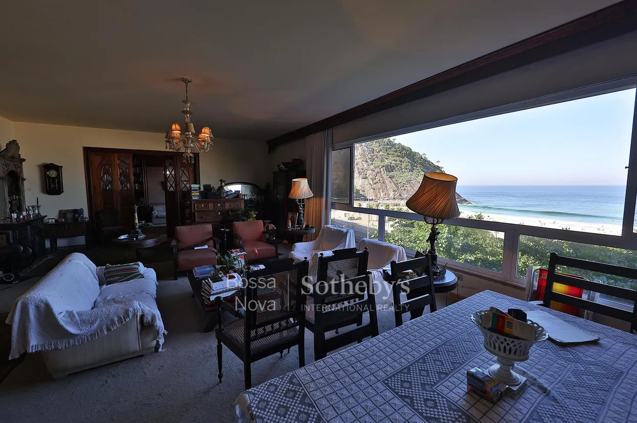 Apartamento frontal no Leme com vista panorâmica de Copacabana