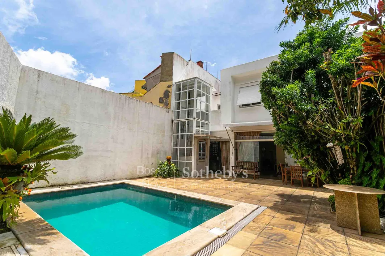 Localizada na Estrada da Gávea, com acesso a instituições de ensino e centros culturais da região, esta residência apresenta projeto contemporâneo distribuído em vários pavimentos. No térreo, a área externa com piscina, garagem e varanda se conecta ao espaço social composto por hall, sala de TV, living com dois ambientes e vista para a área verde, sala de jantar, lavabo, hall íntimo, cozinha e gabinete. No pavimento superior, a área íntima reúne a suíte principal com vista ampla, segunda suíte com closet e escritório, além de dormitório com varanda e circulação apoiada por rouparia, banheiro e sala de estar íntimo. Os pavimentos inferiores oferecem área de estar com bar e jogos, dependências de serviço com lavanderia e dormitórios, além de ambiente destinado a ateliê com banheiro. A casa dispõe de elevador, sistema de segurança com câmeras e duas vagas, mantendo flexibilidade para usos complementares conforme necessidade do futuro morador.