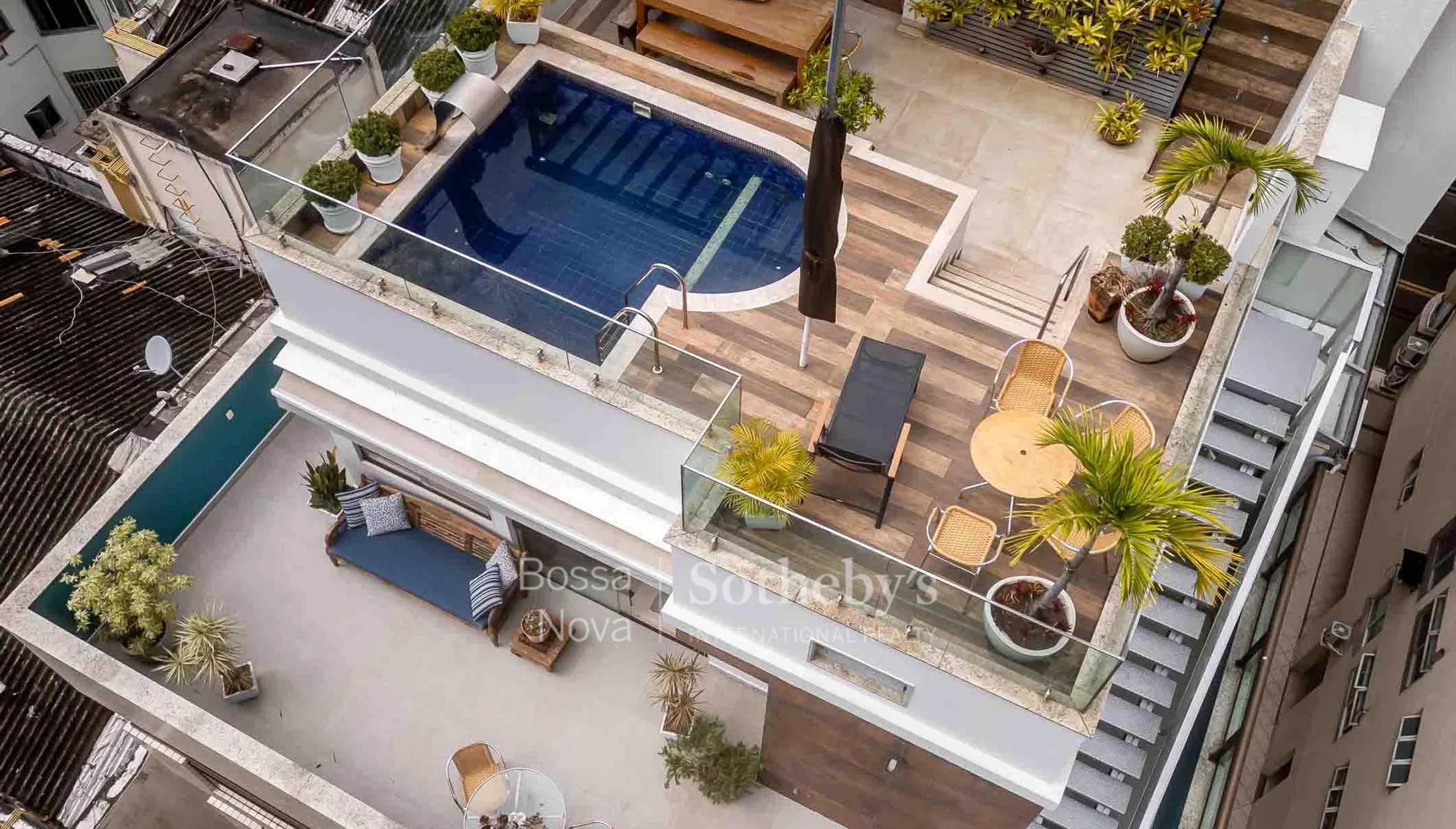 Localizada na parte baixa da Gávea, esta cobertura triplex oferece vista para o Cristo Redentor e projeto que integra ambientes sociais e de lazer em diferentes níveis. No primeiro piso, a área social dispõe de sala para três ambientes com acesso à varanda cercada por vegetação, lavabo, três suítes, cozinha planejada e área de serviço. O segundo piso, acessado por escada linear, reúne sala com varanda, dois dormitórios, incluindo uma suíte com dois closets e terraço privativo, além de sauna e chuveiro. O terceiro piso abriga o espaço externo, com piscina, chuveiro, churrasqueira, forno à lenha e jardim com vista panorâmica. O edifício conta com áreas de lazer e três vagas de garagem.