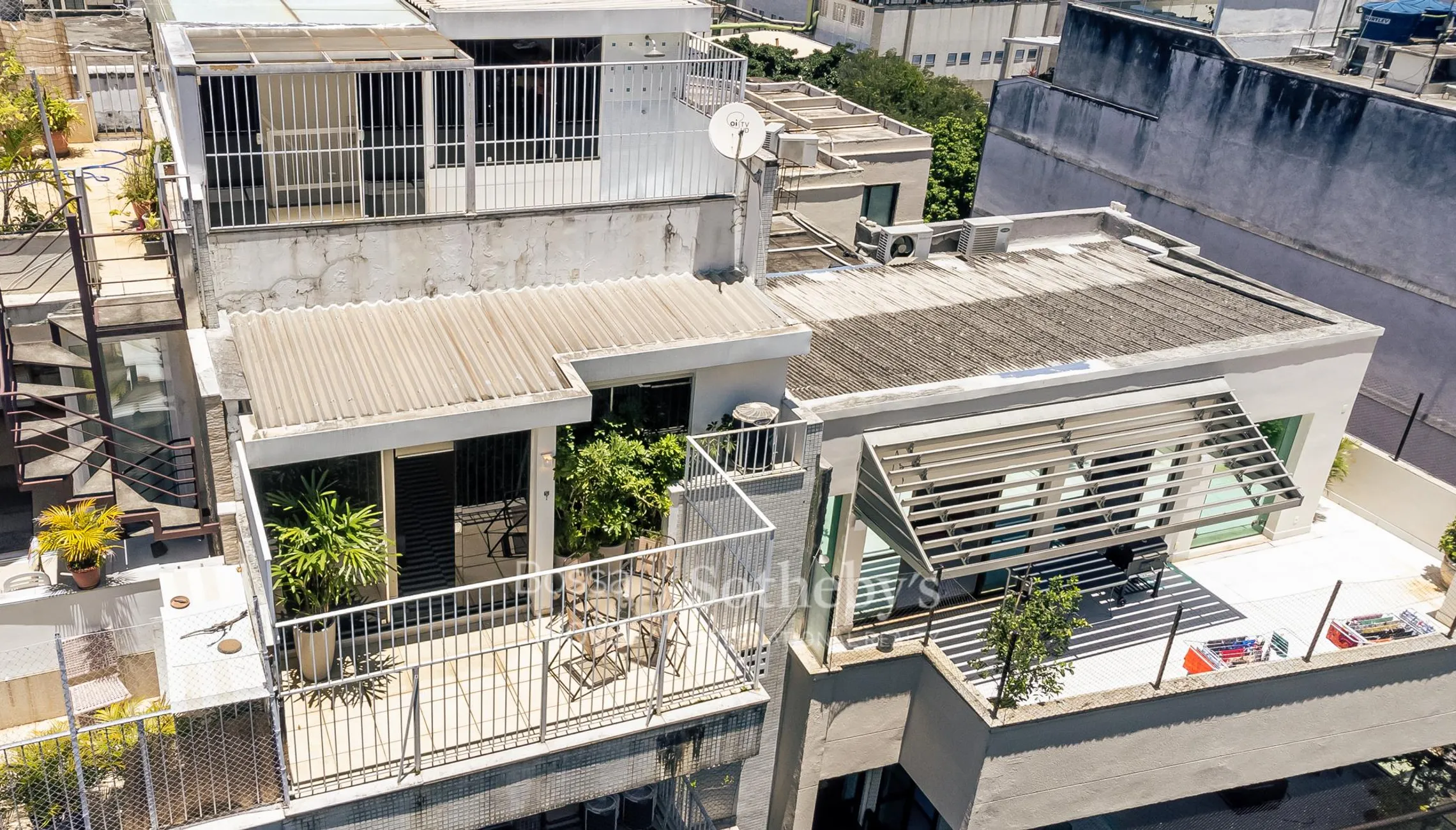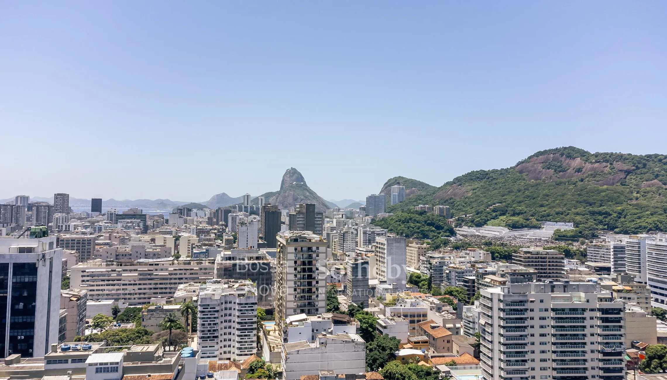 Cobertura triplex clara e arejada, com vista para o Cristo Redentor, localizada em rua cobiçada próxima a todo comércio do Humaitá. No primeiro piso apresenta sala em dois ambientes com acesso à varanda, dois quartos, sendo um deles reversível, com porta de correr que o integra à sala, uma suíte de fundos, banheiro social, copa-cozinha, área de serviço e banheiro de funcionários. O segundo piso, acessado por escada em patamar, dispõe de uma sala com cozinha gourmet e acesso a um terraço na parte frontal, além de uma suíte com closet de fundos. No terceiro piso há um salão com bancada de apoio e terraço com chuveirão. A unidade dispõe de uma vaga na escritura.
