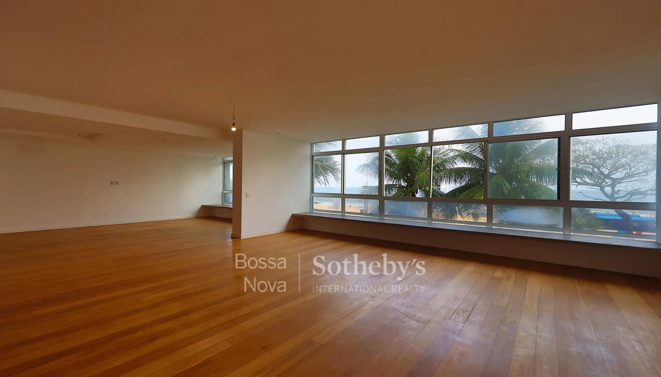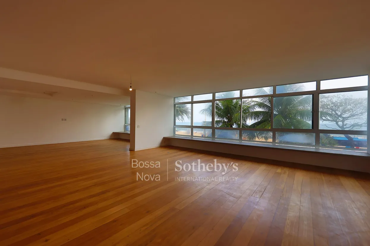 Localizado em uma das regiões mais valorizadas de Ipanema, este apartamento ocupa andar inteiro em edifício revestido em granito, com portaria 24 horas. A planta bem distribuída inclui hall privativo, living para três ambientes com piso em madeira de lei e vista panorâmica da orla, lavabo, sala íntima e quatro suítes, todas com closets planejados, sendo a principal com dois closets individuais. A área de serviço conta com copa, cozinha com marcenaria sob medida, lavanderia e duas dependências completas. O imóvel dispõe de três vagas de garagem. O edifício oferece bicicletário e espaço para armazenamento.