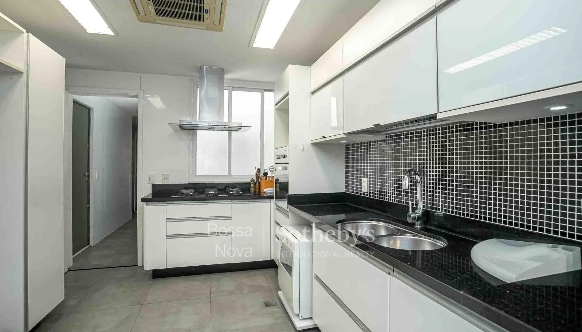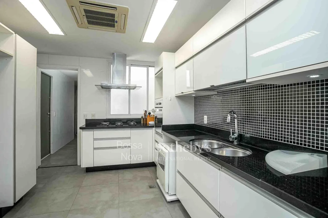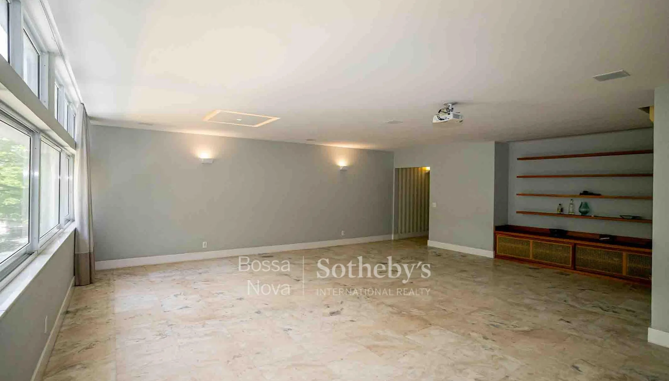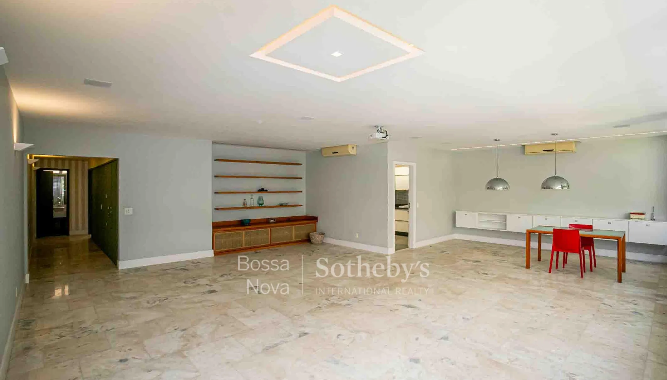 A uma quadra da Praia de Ipanema, este apartamento reformado apresenta hall privativo e planta bem distribuída, favorecendo iluminação natural e ventilação. O salão integra três ambientes — estar, jantar e TV — e a área íntima dispõe de quatro dormitórios, sendo três suítes, incluindo a principal com closet. Há ainda banheiro social e lavabo. A copa e a cozinha são planejadas e conectam-se à área de serviço com dependências completas. Um espaço externo situado entre os cômodos pode ser configurado como jardim de inverno, contribuindo para a circulação entre os ambientes. Os acabamentos incluem mármore nas áreas sociais e nos banheiros, laminado nos dormitórios e corredores, e porcelanato na cozinha e na área de serviço. O imóvel conta com duas vagas de garagem. O edifício possui cinco andares, com uma unidade por andar, oferecendo privacidade aos moradores.