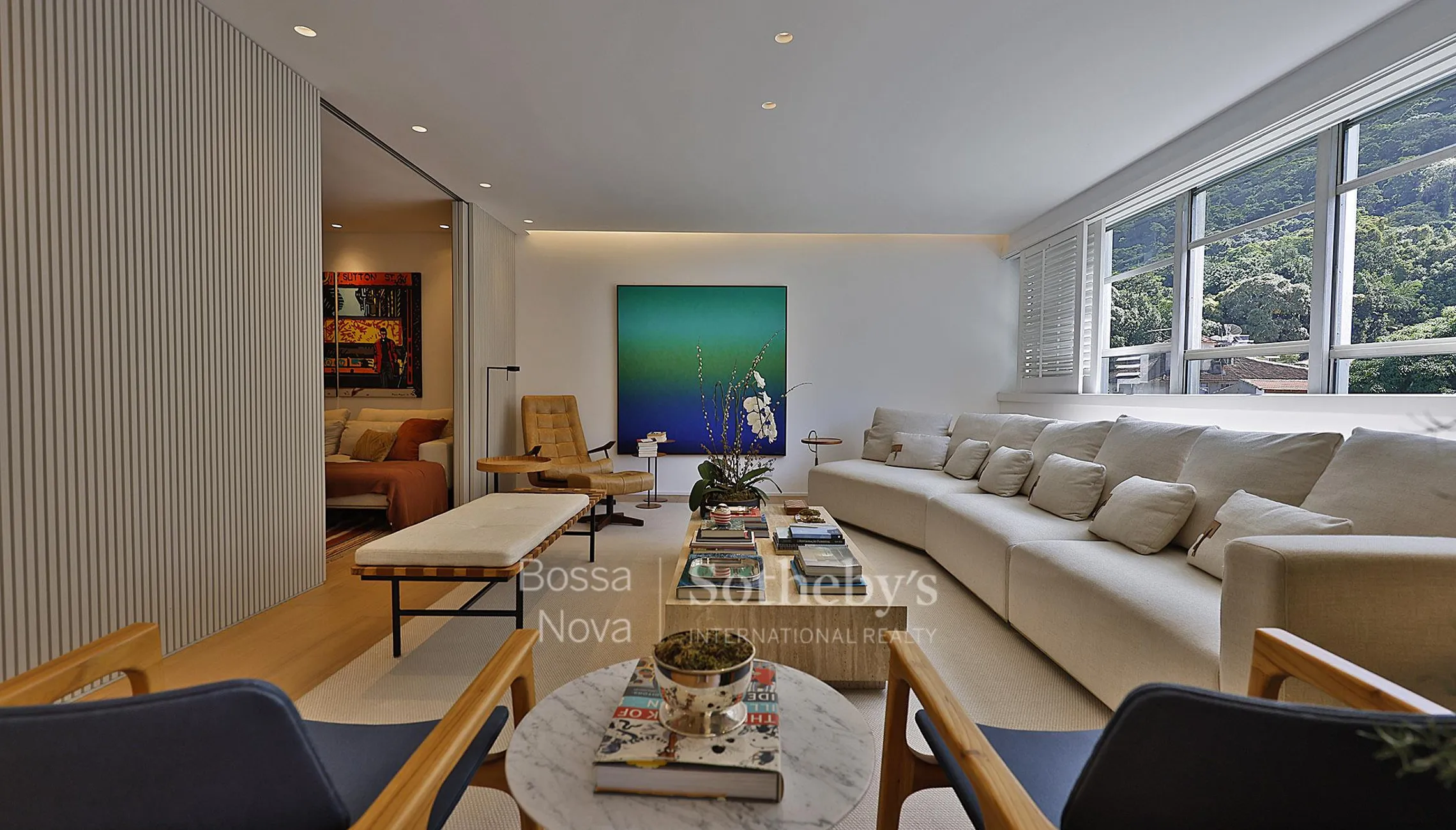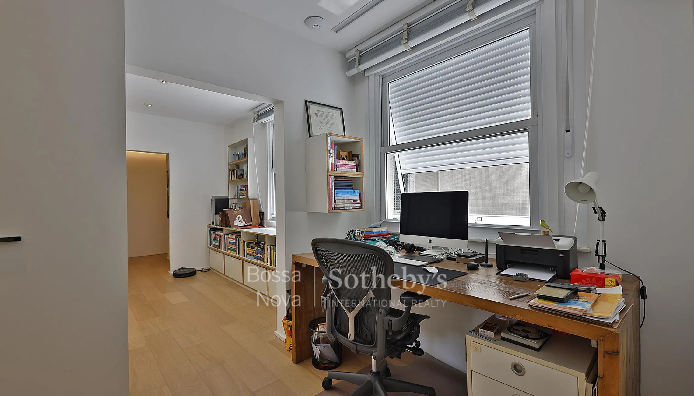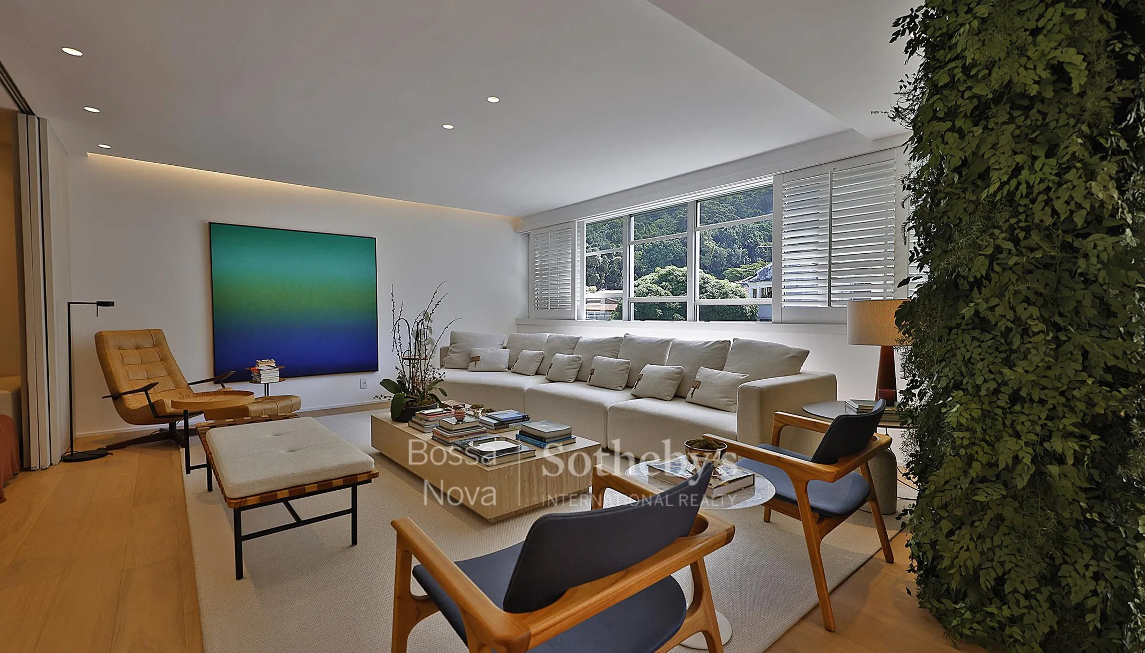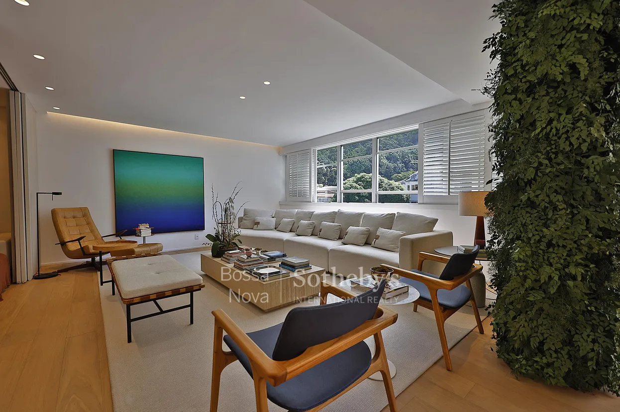 Apartamento iluminado e ventilado em rua com segurança 24 horas no Jardim Botânico. Na área social há um living amplo em dois ambientes integrado com sala de TV e sala de jantar, bem como lavabo, copa, cozinha planejada espaçosa, dependências completas e lavanderia. A planta circular dá acesso à área íntima com rouparia, louceiro e luz natural, além de banheiro social e quatro quartos, sendo duas suítes, a master com closet e escritório. O apartamento conta com piso de madeira Tauari e cabeamento para internet. O condomínio conta com duas vagas com box exclusivo na garagem, playground e circuito interno de TV.