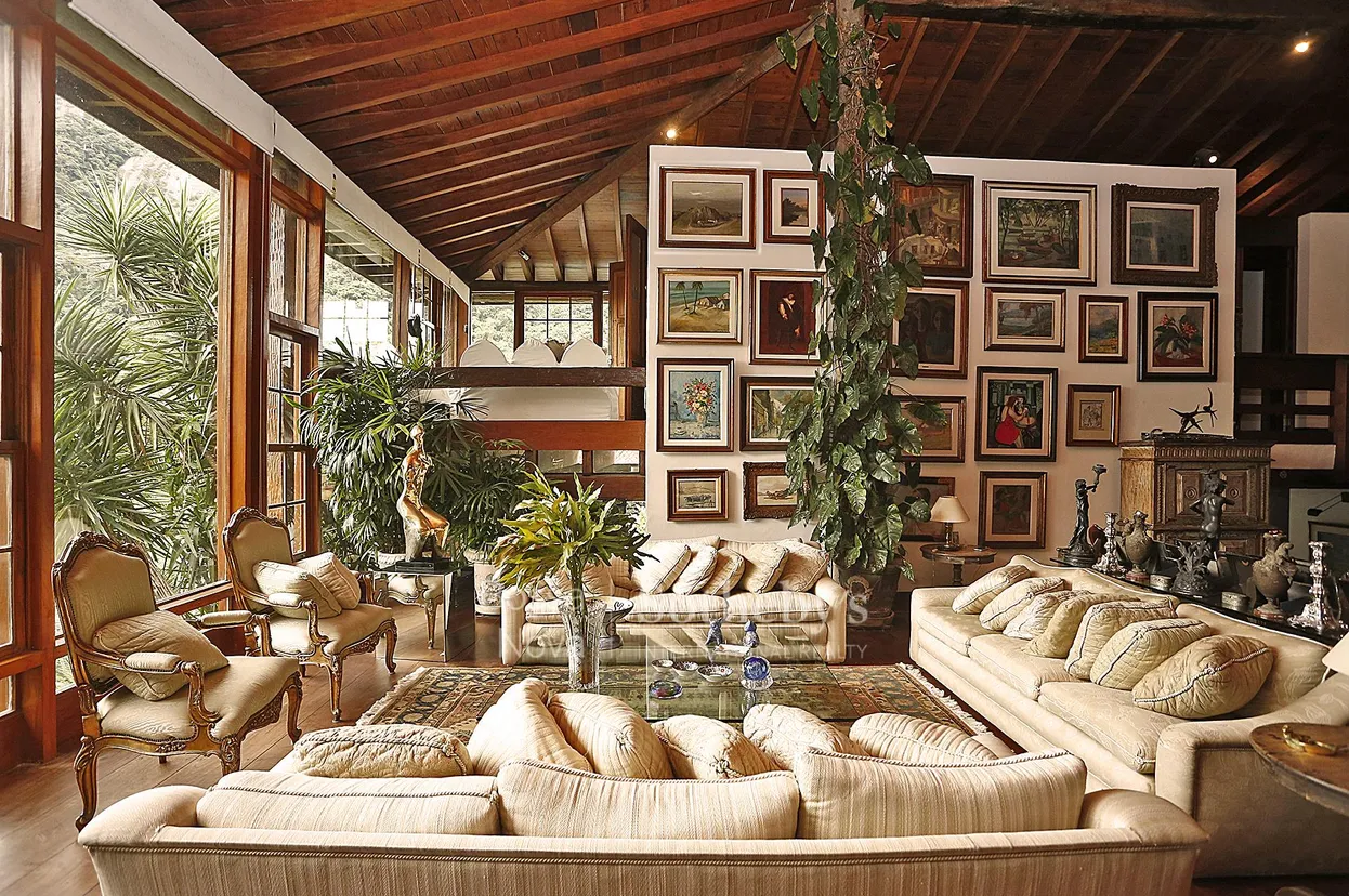Casa com projeto do renomado arquiteto Zanini em rua com cancela e segurança. Duas casas com possibilidade de serem adquiridas separadamente. Predominam os materiais rústicos e naturais. Jardim em níveis contemplando oito pés de coqueiros, assador, horta, gerador, caixa d'água com coleta de água de chuva, canil para três cães, depósitos, hidráulica e elétrica novos. Primeira casa: Living com terraço, em vários ambientes em dois níveis, splits, lavabo, armário de louça, sala de jantar em nível elevado com acesso a cozinha equipada, área de serviço, três dependências de funcionária, dois banheiros e lavanderia. Na área íntima, quatro suítes, sendo uma máster com hidromassagem, closet e sala íntima. Varanda com churrasqueira, bar e piscina. Segunda casa: Living com varanda, splits, sala de jantar, cozinha em ilha, fogão gourmet e despensa. No segundo andar, suíte máster com varanda, escritório e closet. Living com acesso ao pavimento inferior, uma suíte, dois dormitórios, um banheiro social, sala de TV, jardim de inverno, churrasqueira e piscina. Escada a outro pavimento inferior para salão de jogos, sauna seca e a vapor, hidromassagem, bar, cave, banheiro social, terraço e duas suítes com closet. Conta com lavanderia, três quartos para funcionários com dois banheiros.