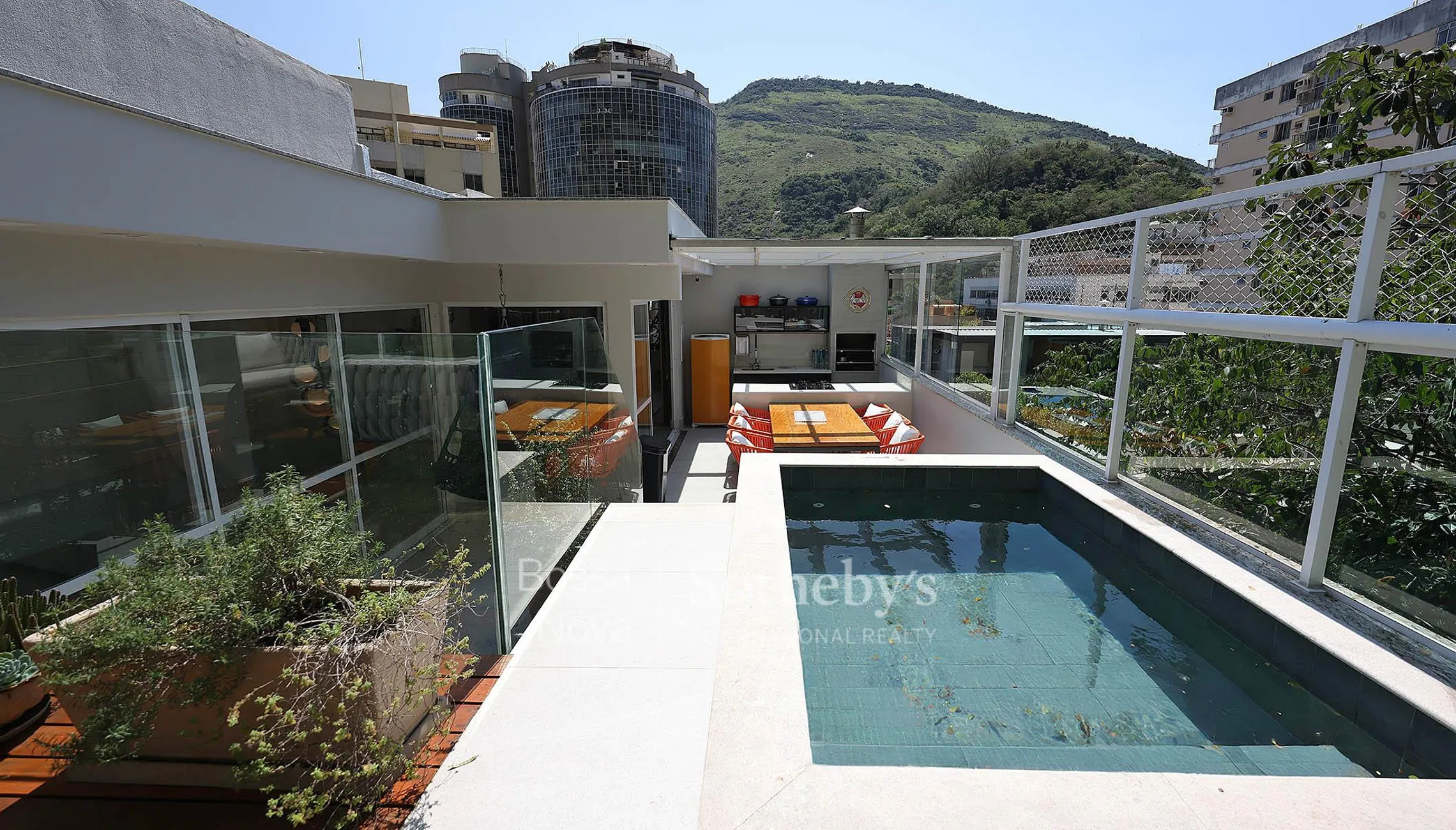 Cobertura duplex reformada, localizada em edifício com infraestrutura completa de lazer. Clara e bem ventilada, a propriedade possui 175 m² distribuídos em dois pavimentos. No piso inferior, estão a sala de TV, sala de jantar, três dormitórios, sendo uma suíte, além de banheiro social, copa, cozinha e área de serviço. O segundo pavimento é acessado por escada linear e abriga uma sala de estar com lavabo, área gourmet com bancada e churrasqueira, coberta por estrutura de vidro que favorece a entrada de luz natural e proporciona integração com a vista para a mata. A área externa conta com espaço de estar, deck com solarium, chuveiro e piscina posicionada em nível elevado. O imóvel dispõe de duas vagas de garagem na escritura. O condomínio oferece portaria 24 horas e área de lazer com sauna, salão de festas, hidromassagem, piscina e academia.