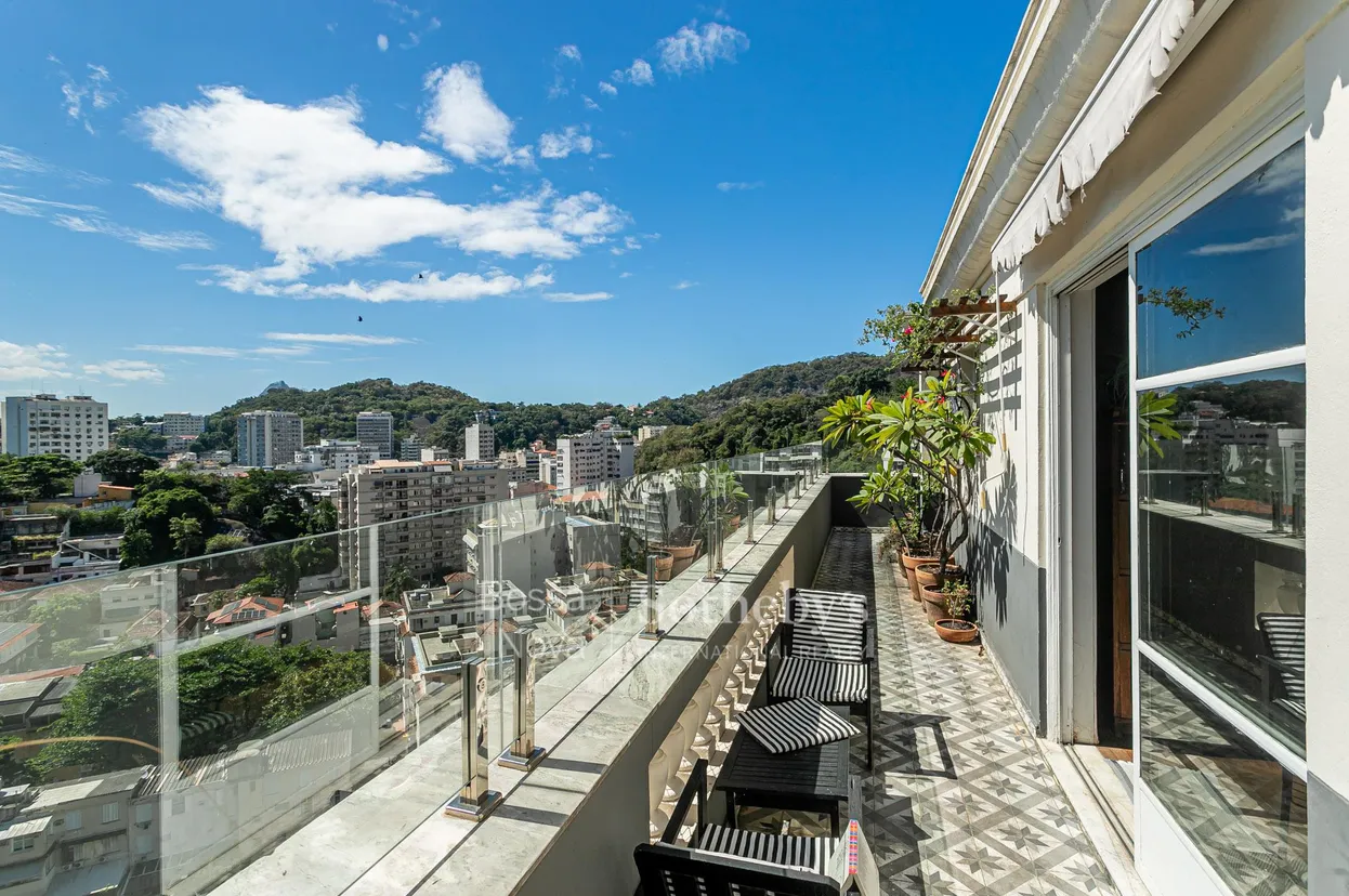 Em edifício imponente, esta cobertura oferece vista privilegiada para o Cristo Redentor e é cercada por paisagismo no térreo, com jardim, pequeno lago com peixes e área de descanso. O imóvel é totalmente avarandado, garantindo iluminação natural abundante e ventilação cruzada. A área social conta com sala de estar e jantar integradas à cozinha aberta, promovendo fluidez e funcionalidade. Na área íntima, são três dormitórios, sendo uma suíte com walk-in closet, além de um banheiro social. O espaço externo da cobertura inclui piscina privativa, churrasqueira e ambiente ideal para receber. Conta ainda com dependência completa para funcionários. O condomínio oferece quadra de futebol, portaria 24 horas e permite até três vagas de garagem, com custo de manutenção reduzido, já incluso no valor condominial. A localização é estratégica, próxima aos colégios Sion e São Vicente de Paulo, além de ótimos restaurantes e conveniências do entorno.