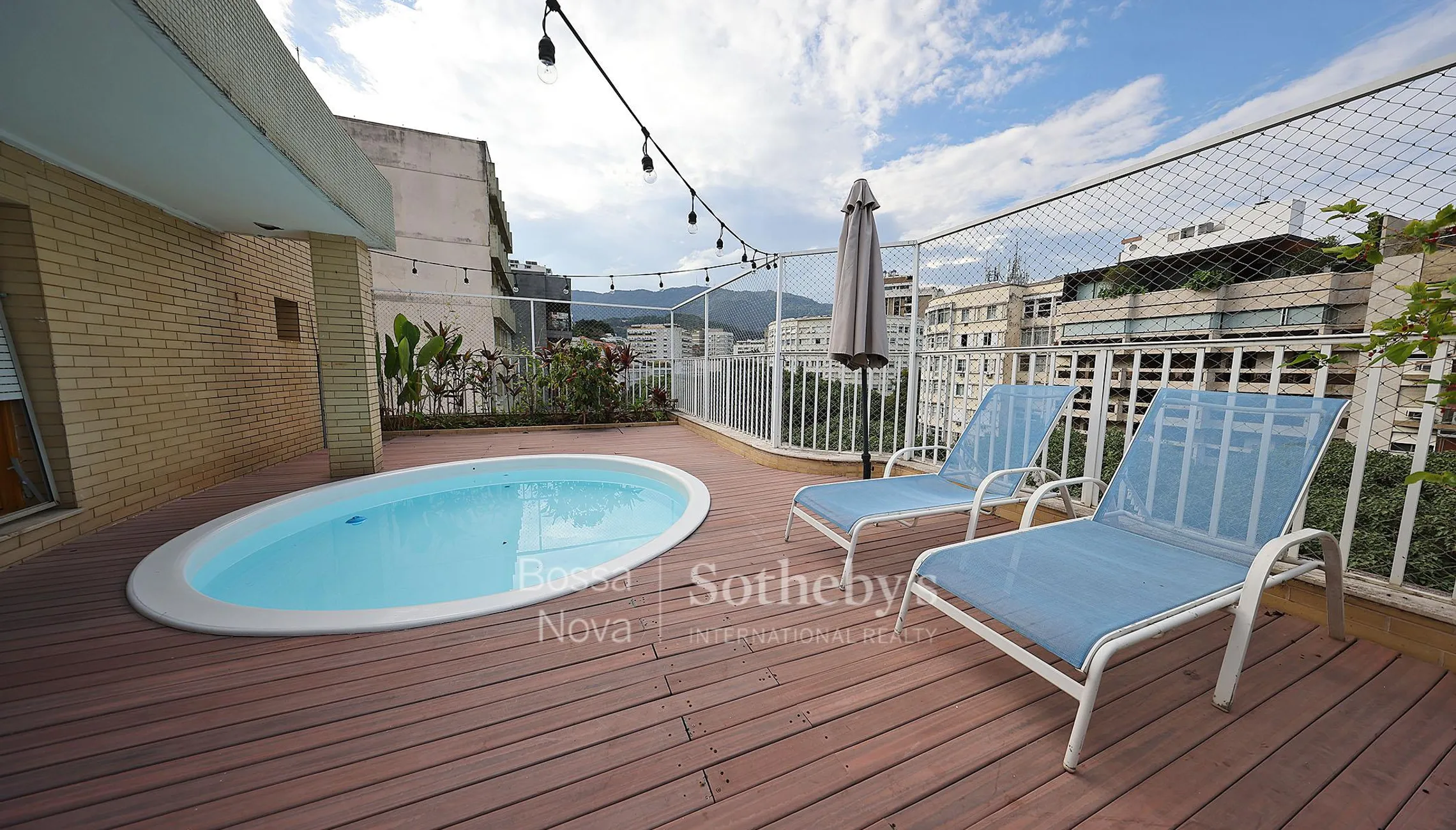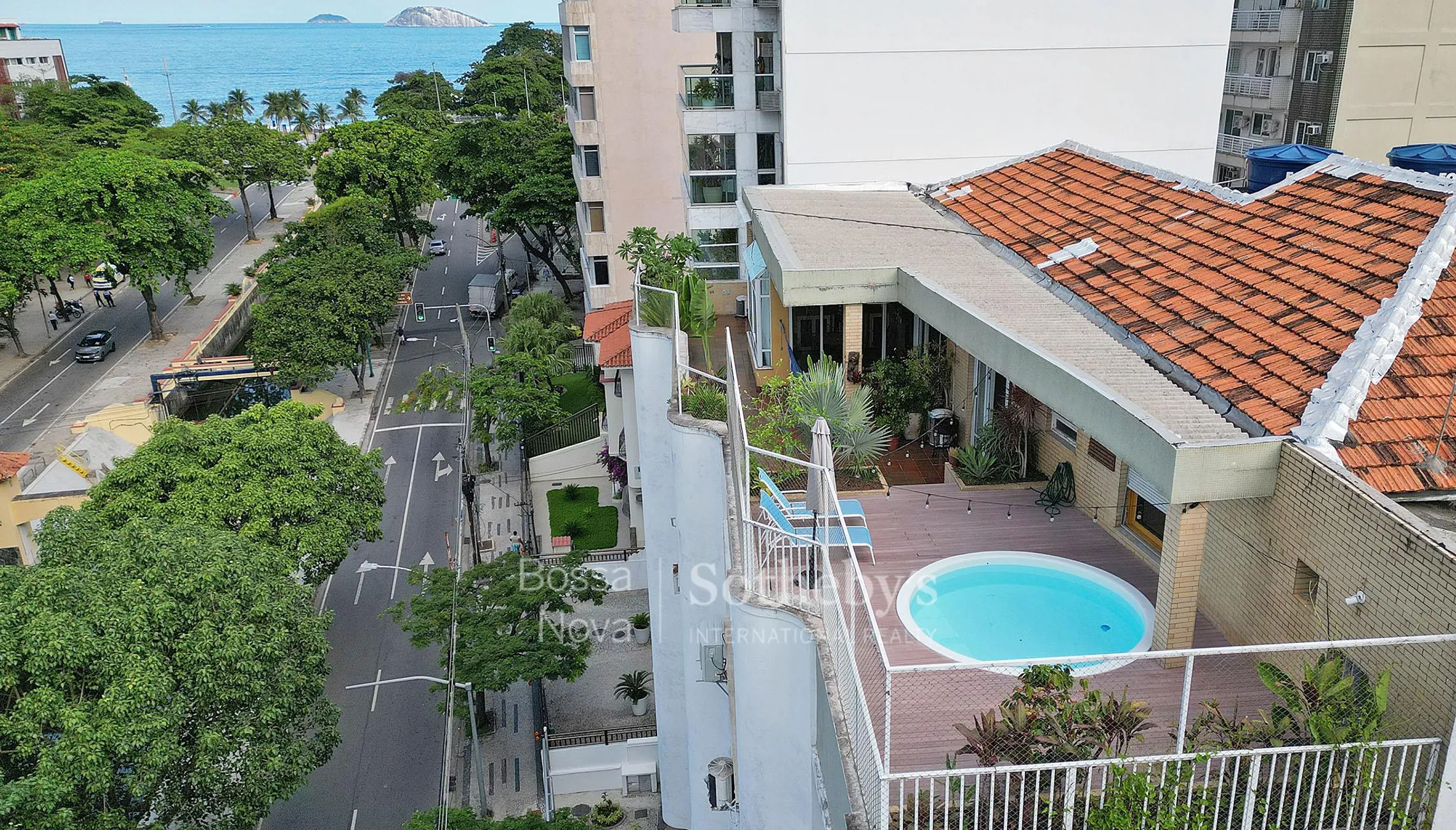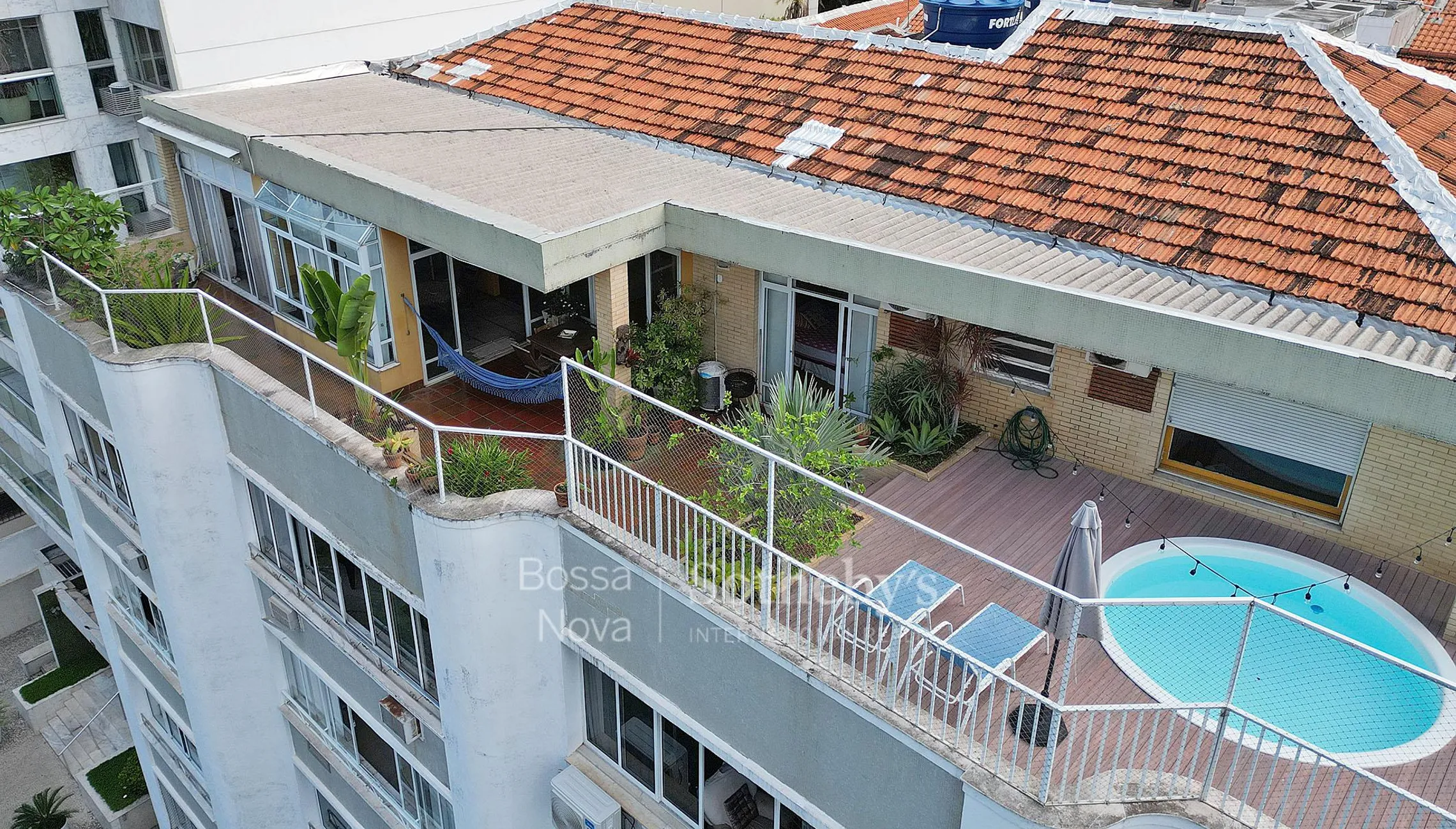 Vista para o mar, piscina e jardim em cobertura duplex com espaços generosos e bem distribuídos