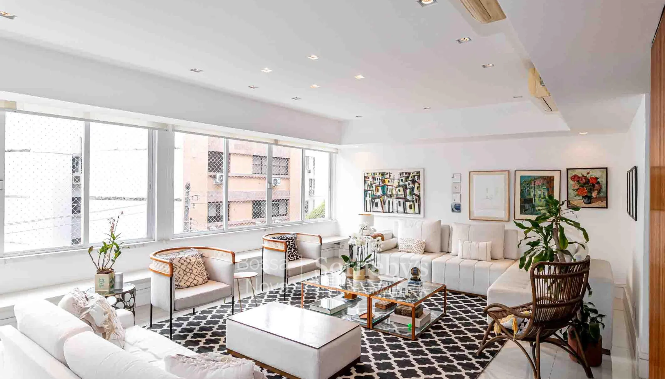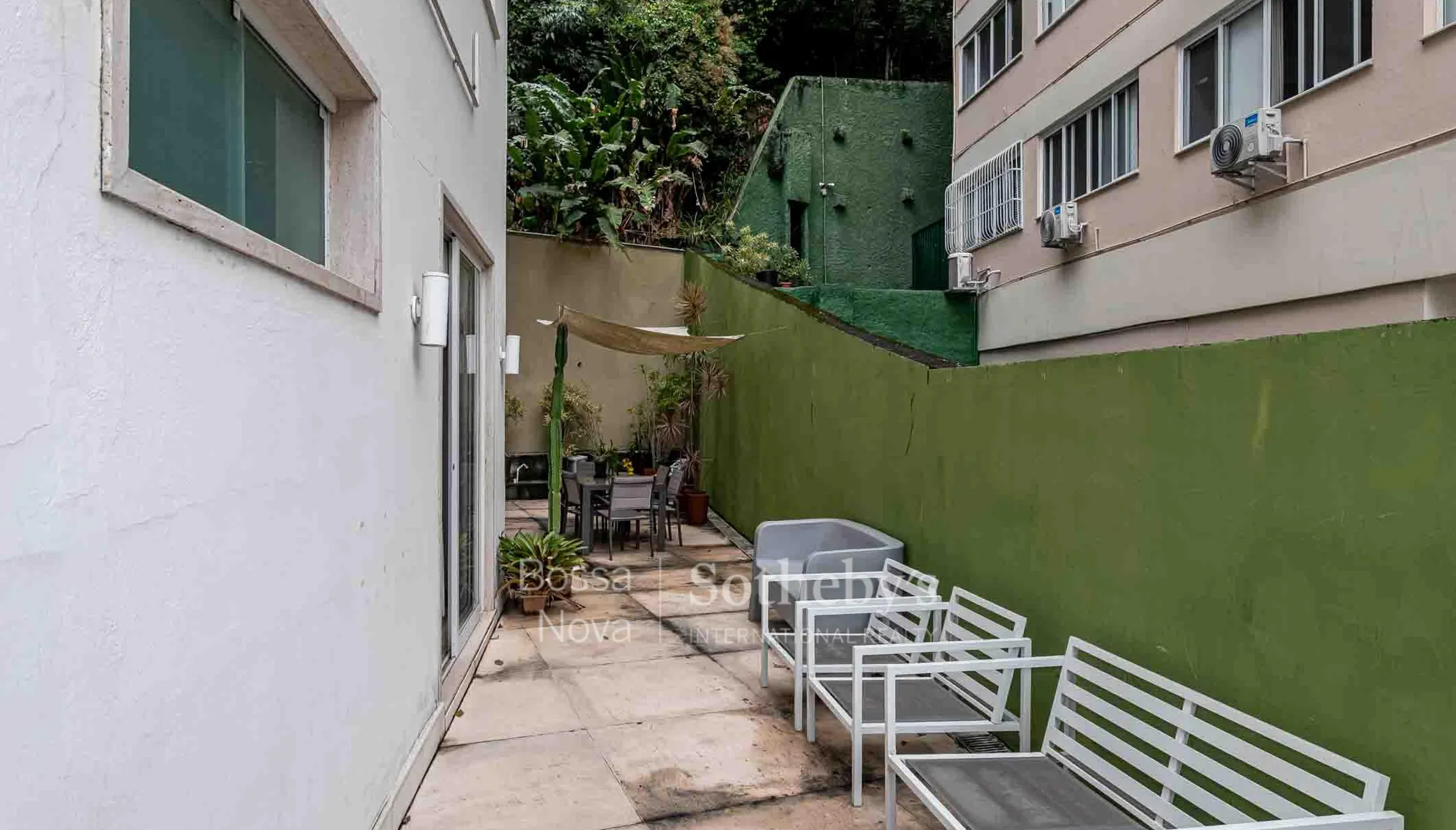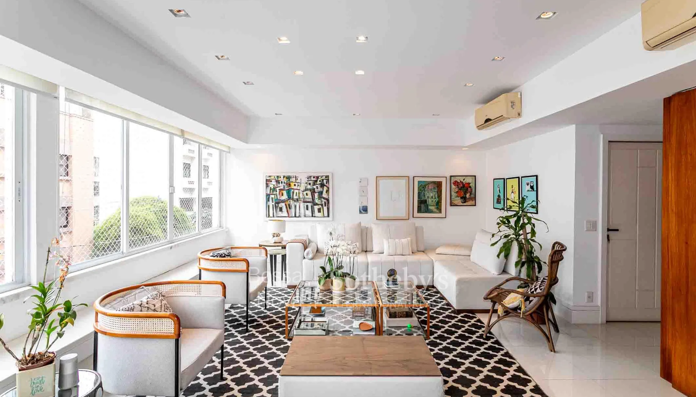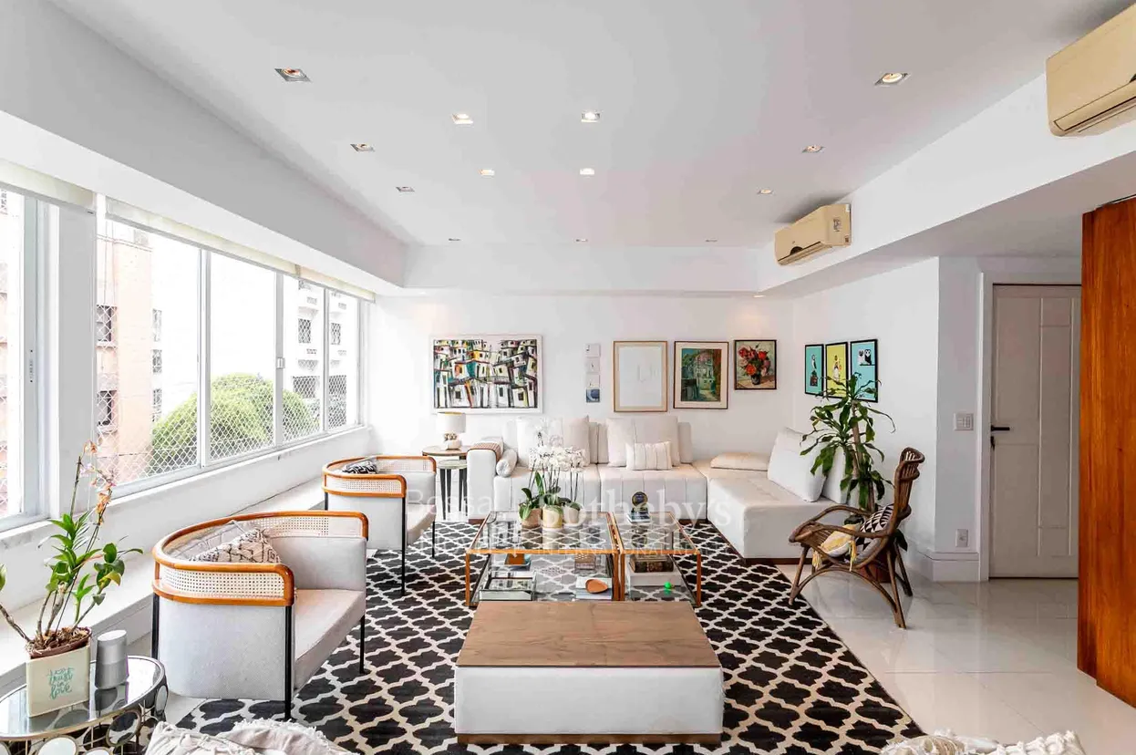 Localizado em uma rua tranquila do Leblon, este apartamento garden se destaca pela planta espaçosa e bem distribuída. A área social é composta por ampla sala para dois ambientes integrada à cozinha, além de lavabo que atende ao espaço. A área íntima reúne cinco dormitórios, sendo duas suítes, incluindo a master com walk-in closet, além de banheiro social. Conta ainda com área de serviço e dependência completa. O edifício oferece playground e sistema de segurança com circuito interno de câmeras, garantindo praticidade e conforto aos moradores.