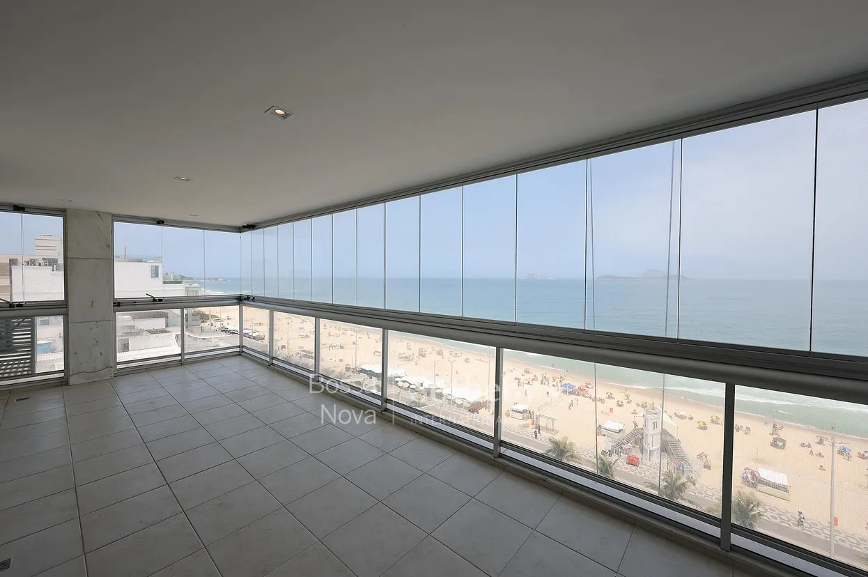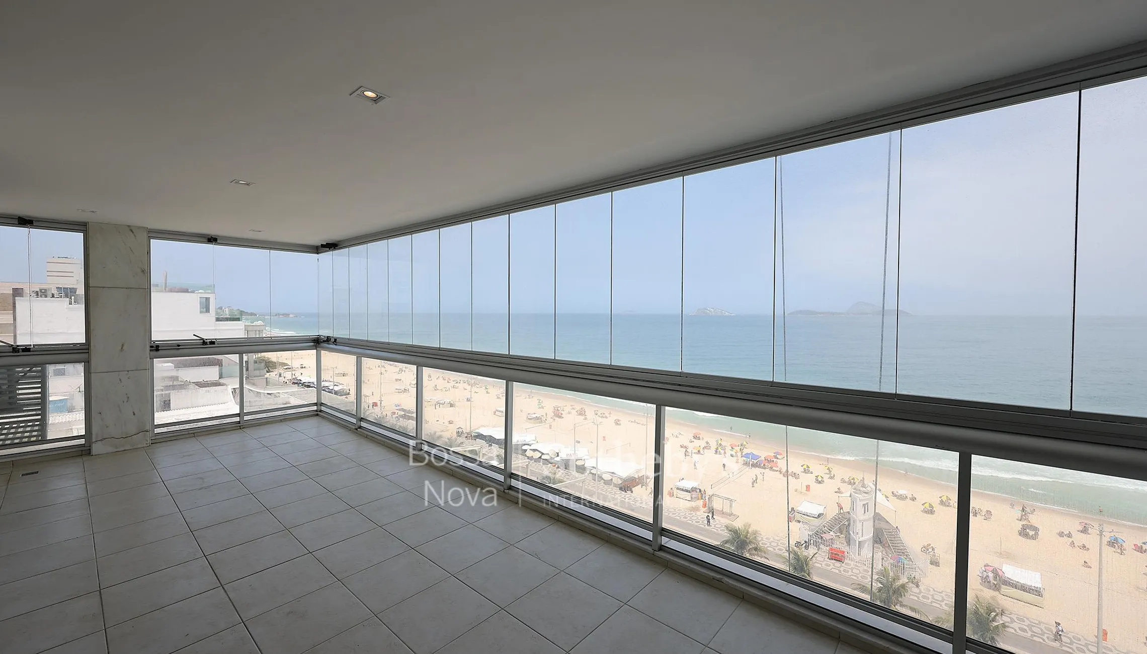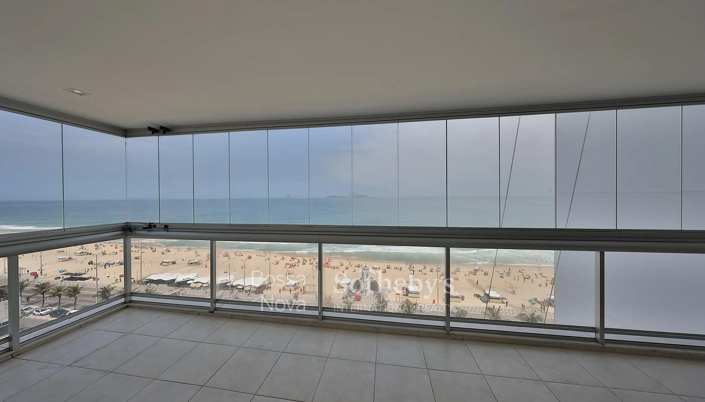 Apartamento frente mar no Leblon com ampla varanda envidraçada
