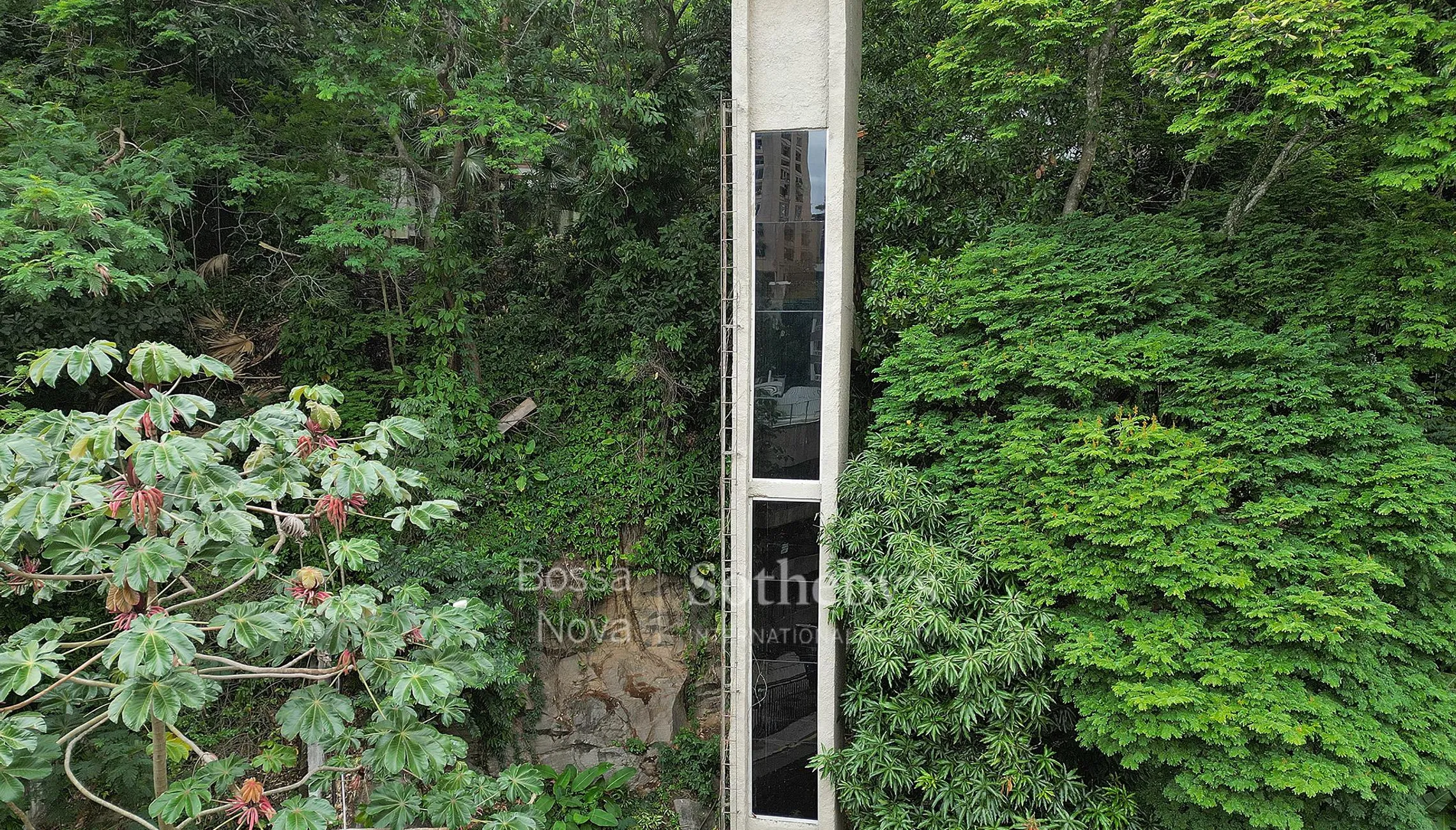 Residência situada em área estritamente residencial e cercada por natureza preservada, com acesso controlado e configuração que favorece privacidade. O projeto apresenta ampla área construída distribuída em ambientes bem planejados, com elevador panorâmico que conecta os níveis da casa. A área social reúne espaços voltados para a paisagem, enquanto a área externa conta com piscina posicionada para receber boa iluminação e quadra destinada à prática esportiva. A área íntima dispõe de quatro suítes distribuídas de forma equilibrada. O terreno abrangente permite integração total com a área verde ao redor, resultando em ambientes que valorizam a relação com o entorno natural.