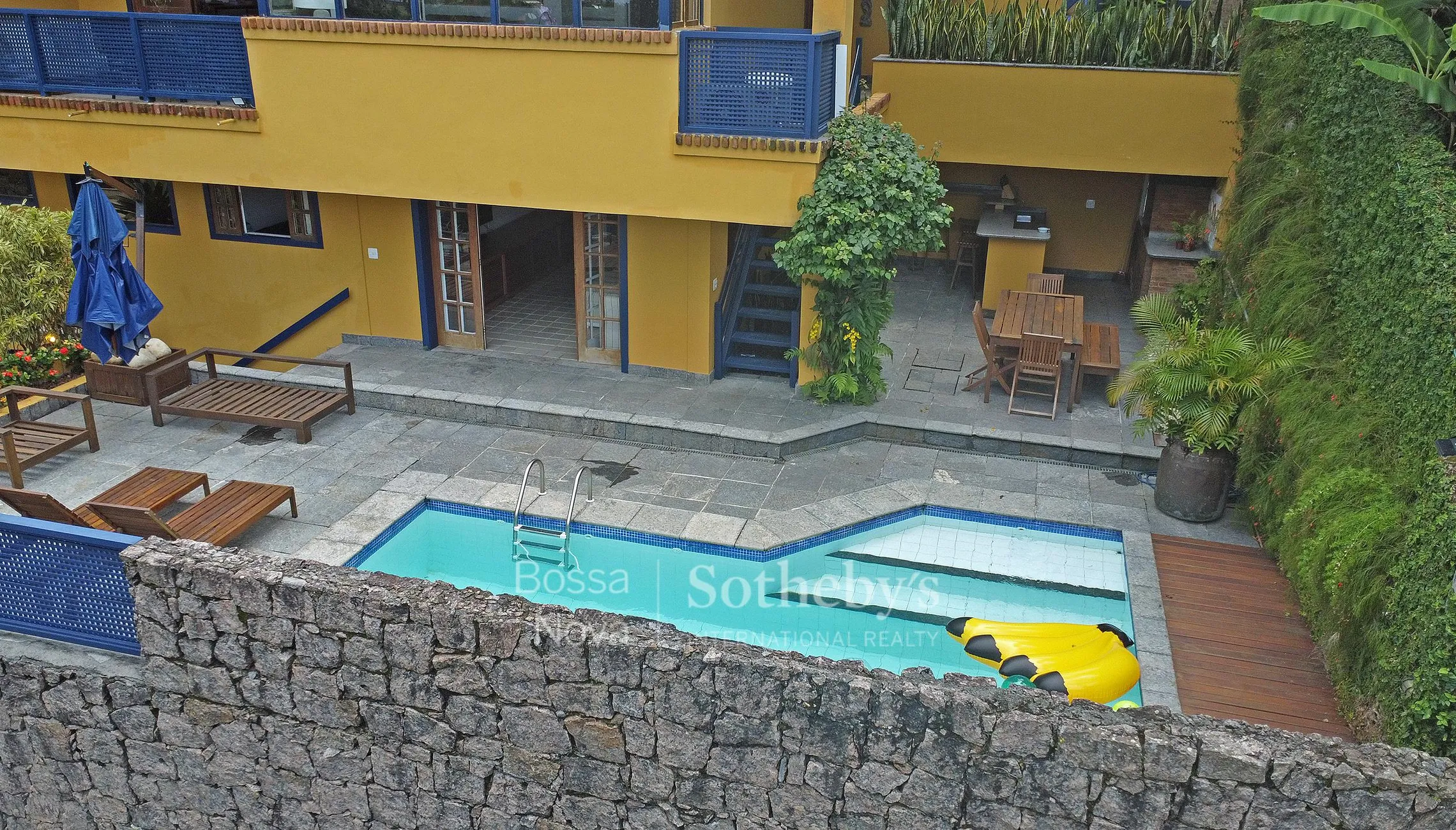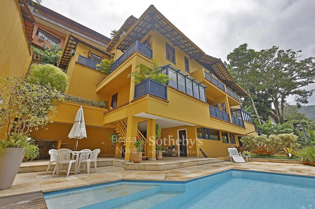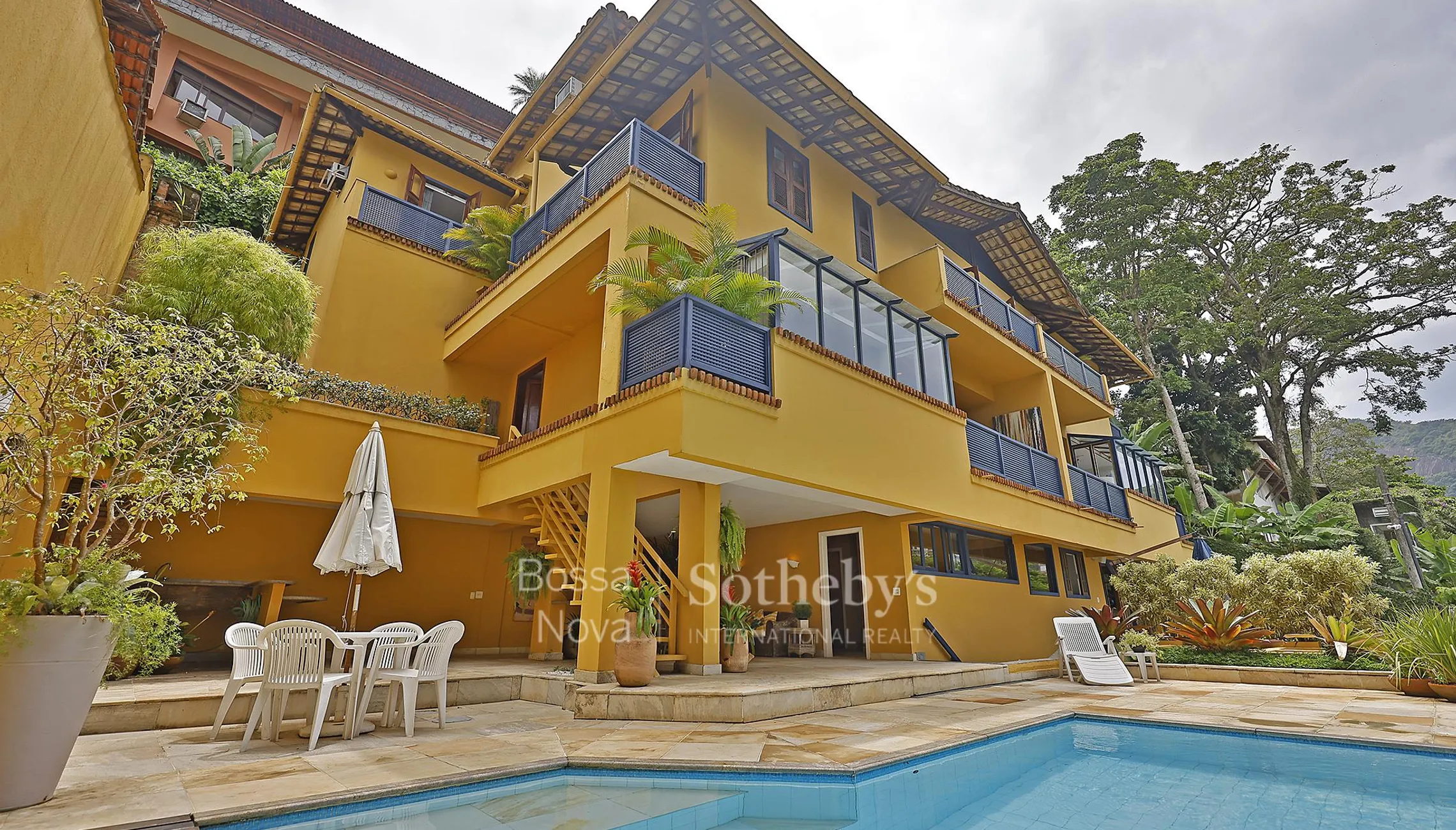 Casa de condomínio cobiçada, na parte baixa, próxima da estação do Metrô São Conrado, com vista livre para o mar. Propriedade composta por três pavimentos. Dispõe de quatro salas, lareira, duas cozinhas, área de serviço e 4 dependências completas para funcionários. Segundo e terceiro pavimentos, com sete quartos, sendo cinco suítes máster. Construção com alto padrão de acabamento. Na área de lazer há duas piscinas e duas saunas a vapor. Condomínio totalmente monitorado, com segurança 24 horas.