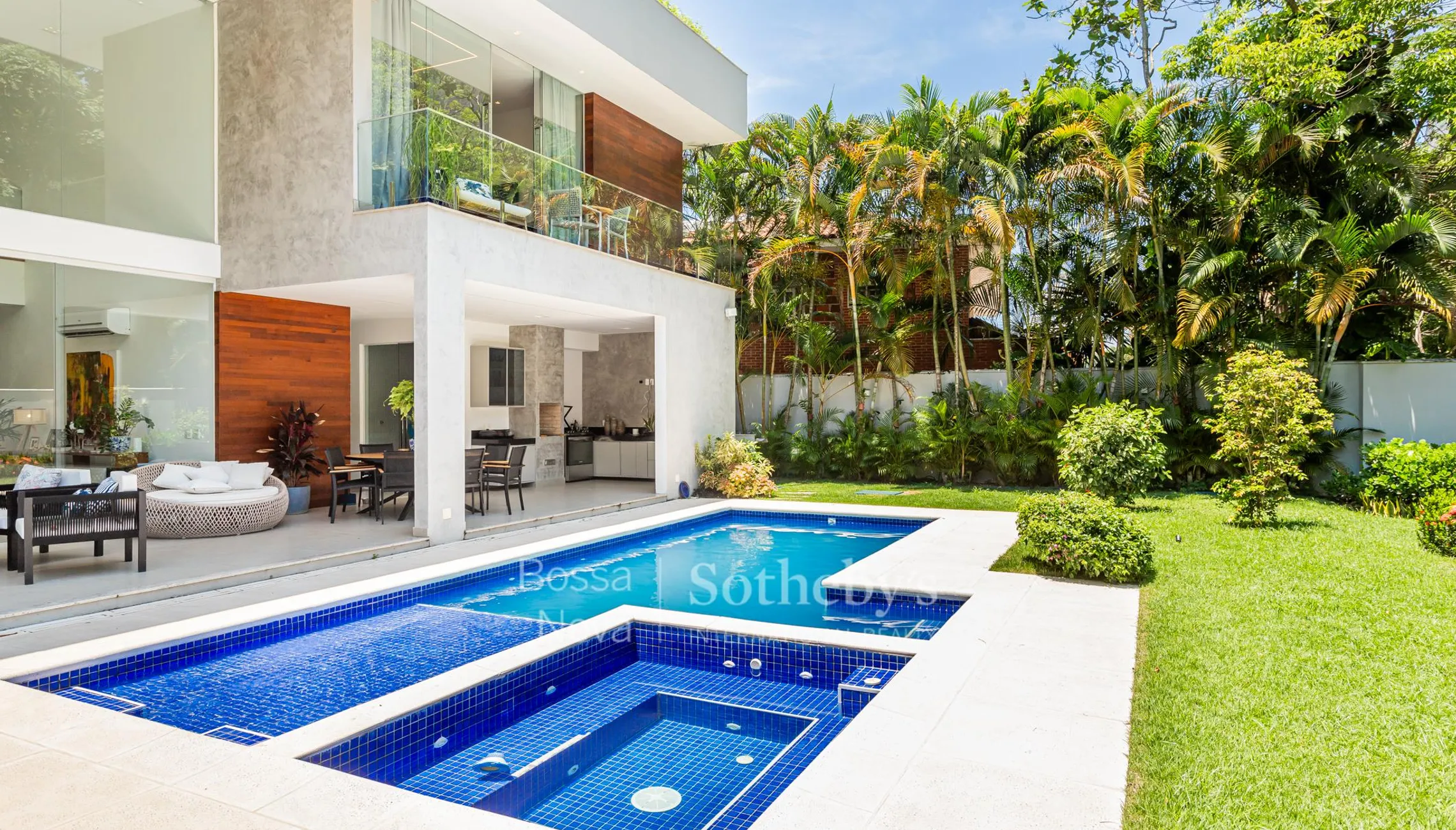 Casa localizada em condomínio de luxo com total segurança em São Conrado, cercada pela natureza e por paisagens e vistas exclusivas, incluindo a Pedra da Gávea. Tem piso em porcelanato no living e em madeira nos quartos. Na área social há duas salas, sendo elas de estar e jantar, e uma sala de home theater, bem como lavabo, cozinha com ilha e armários, despensa e área de serviço com quarto de funcionários e banheiro. A área íntima conta com quatro suítes, sendo uma suíte master com closet, todas com armários nos quartos e banheiros. A parte externa tem uma área de lazer com piscina e hidromassagem, sauna, varanda gourmet e um jardim frontal, além de espaço para estacionar seis carros. A rua tem cancela que funciona 24 horas.