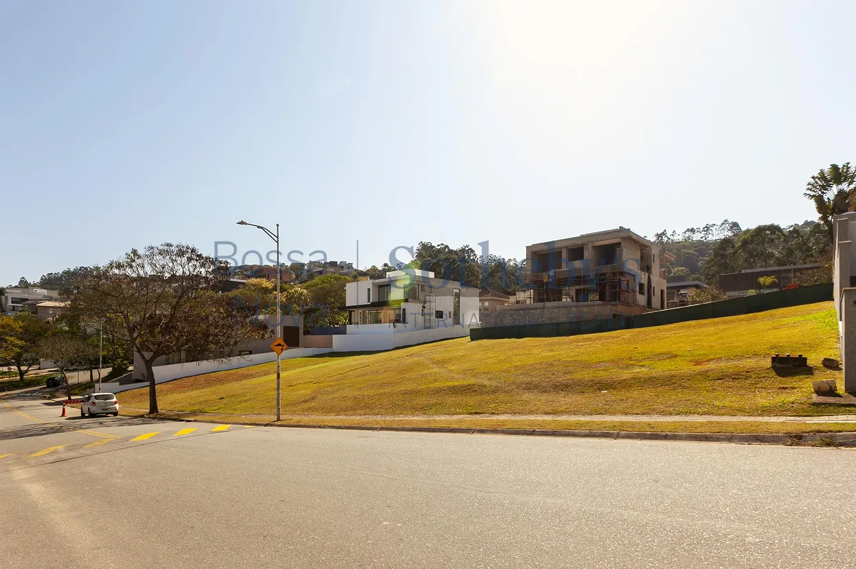 Terreno localizado no ponto alto do condomínio, com topografia em leve aclive. Possibilita diferentes tipos de projetos. Com recuos distantes dos vizinhos. Localizado em condomínio moderno, com alamedas espaçosas, fiação subterrânea, finais de rua com rotatória e bosque privativo. Lazer com quadras de tênis, quadras poliesportivas e academia.