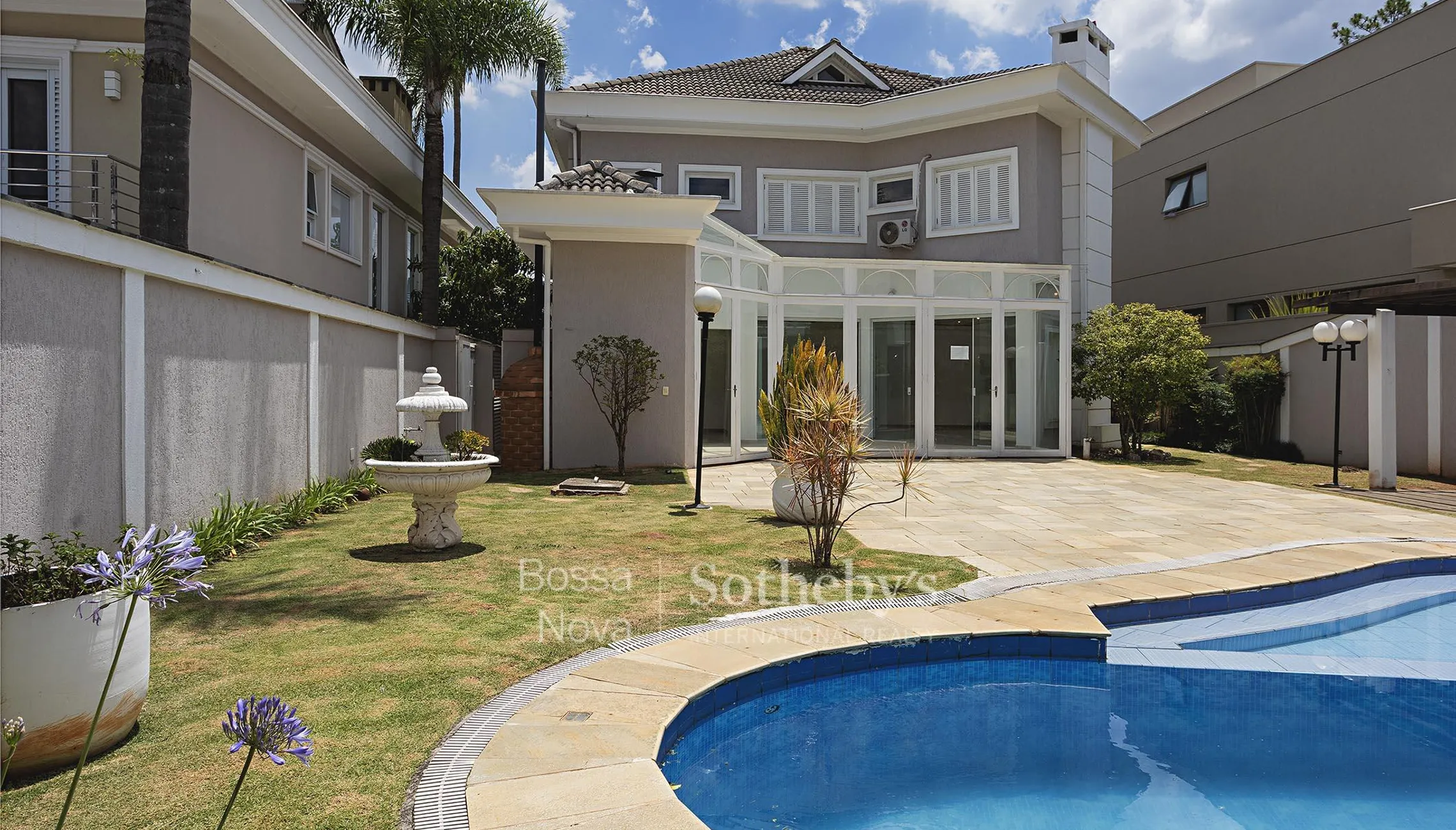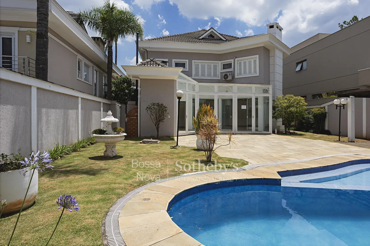 Casa funcional em estilo americano, com livings amplos e bem integrados, além de espaço gourmet fechado conectado à área de lazer. A área íntima conta com suítes espaçosas, sendo a suíte principal equipada com porta-balcão e banheiro com acabamento em mármore. A área externa dispõe de gramado, piscina, sauna e gazebo, todos posicionados de forma a favorecer a insolação ao longo do dia. O imóvel está localizado em condomínio de pequeno porte, com vista para um lago e estrutura de lazer. A região oferece fácil acesso à área central e conta com ampla oferta de comércio e serviços.