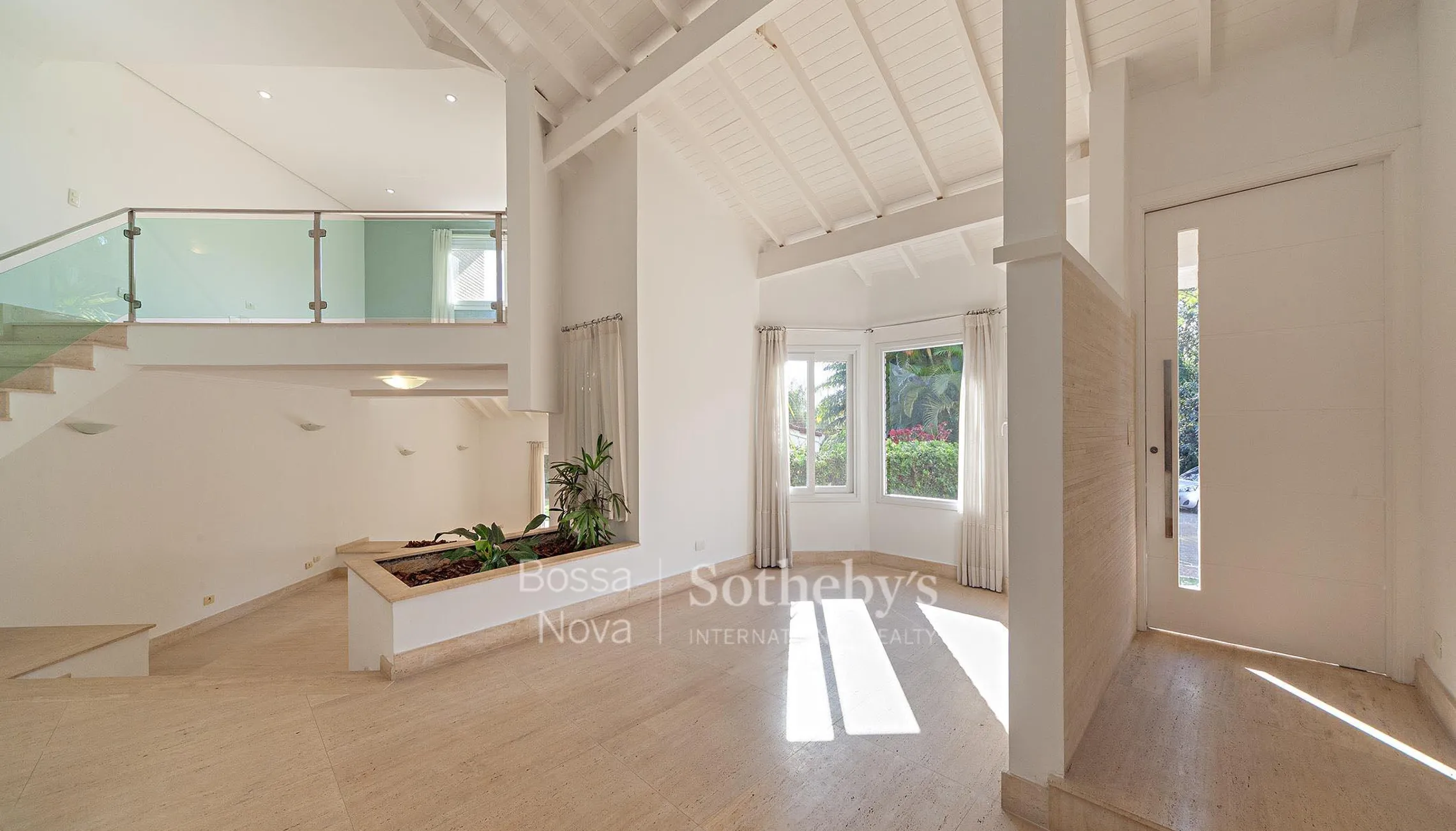Residência em estilo americano, com pé-direito duplo no hall de entrada e ambientes sociais integrados, todos voltados para o jardim. As suítes são amplas e bem iluminadas, com vistas agradáveis, além de um escritório reservado que oferece praticidade ao dia a dia. A área externa conta com jardim privativo que valoriza o entorno e proporciona tranquilidade. Localizada em rua sem saída, garante privacidade e um ambiente silencioso.