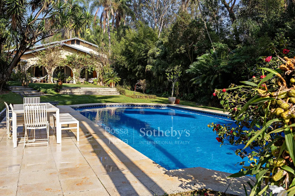 Localizada em condomínio reconhecido pela segurança e pela extensa área verde, esta residência proporciona contato direto com a natureza em um dos endereços mais valorizados da cidade. Implantada em amplo terreno, a casa foi projetada para oferecer privacidade e lazer, com ambientes generosos e bem distribuídos. A área social conta com living com lareira e múltiplos ambientes, sala de jantar e mezanino. A varanda ensolarada se integra ao jardim e à área de lazer, que reúne piscina e quadra de tênis. A área íntima dispõe de cinco dormitórios, sendo duas suítes. Complementam a propriedade a cozinha planejada, área de serviço e dependência para funcionários. Uma opção que une conforto, segurança e natureza em localização privilegiada.