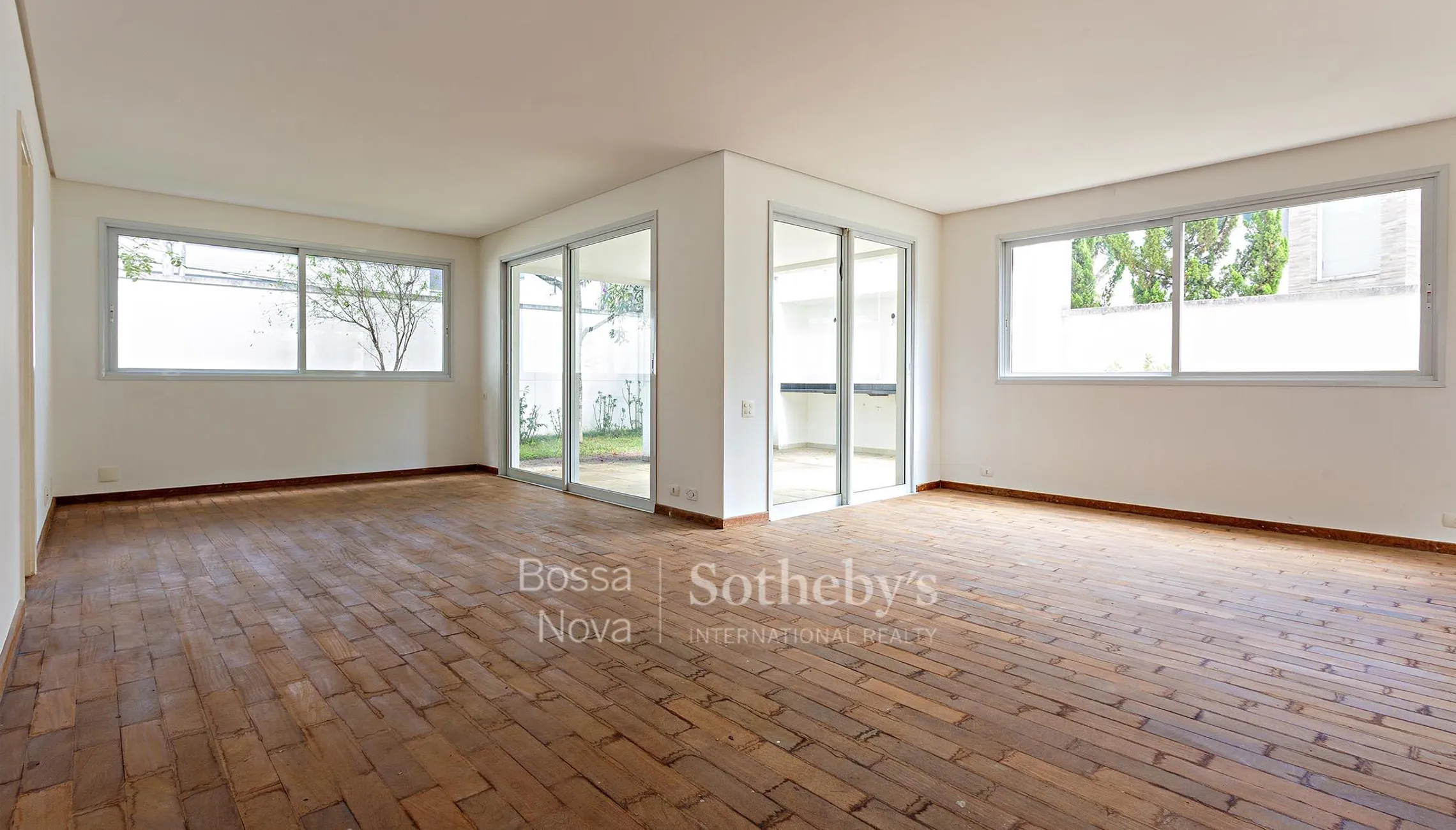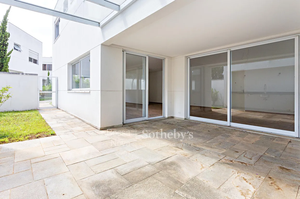 Residência em condomínio exclusivo com apenas oito casas isoladas, que combina privacidade, sofisticação e alto padrão construtivo. A área social contempla living, sala de jantar, escritório, varanda gourmet, sala de almoço, cozinha equipada com armários e lavabo. Na área íntima, são quatro suítes, sendo a principal com closet e banheiros Sr. e Sra. Os acabamentos incluem piso em madeira cumaru nas salas e suítes, mármore italiano botticino nos halls, escadarias e lavabo, além de bancadas em mármore grego branco piguês nos banheiros. Entre os diferenciais técnicos estão persianas automatizadas com abertura total, infraestrutura para ar-condicionado multi-split, pontos de aspiração central, hidromassagem, e cabeamento para TV a cabo e internet. No subsolo, garagem privativa com seis vagas, piso com pintura epóxi, portão independente, despensa, depósito, quarto para motorista e acesso ao apartamento de funcionárias. O sistema de segurança inclui portaria blindada, sensores infravermelhos, câmeras com gravação e gaiolas automatizadas para acesso de veículos e pedestres. O condomínio conta ainda com gerador e infraestrutura para medição individualizada de água, gás e energia.