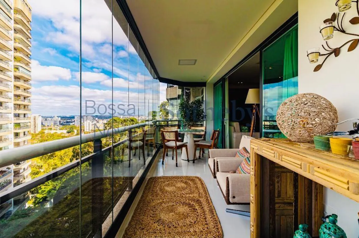 Apartamento localizado em região privilegiada. A área social possui um amplo living, piso em porcelanato, terraço com vista para a natureza, sala de jantar, cozinha com armários planejados e de qualidade e copa ampla com armários planejados. A área íntima dispõe de quatro suítes repletas de armários. Prédio em condomínio cobiçado de São Paulo, com natureza ao redor e repleto de lazer com quadra de tênis, piscinas, academia e segurança 24 horas com monitoramento.