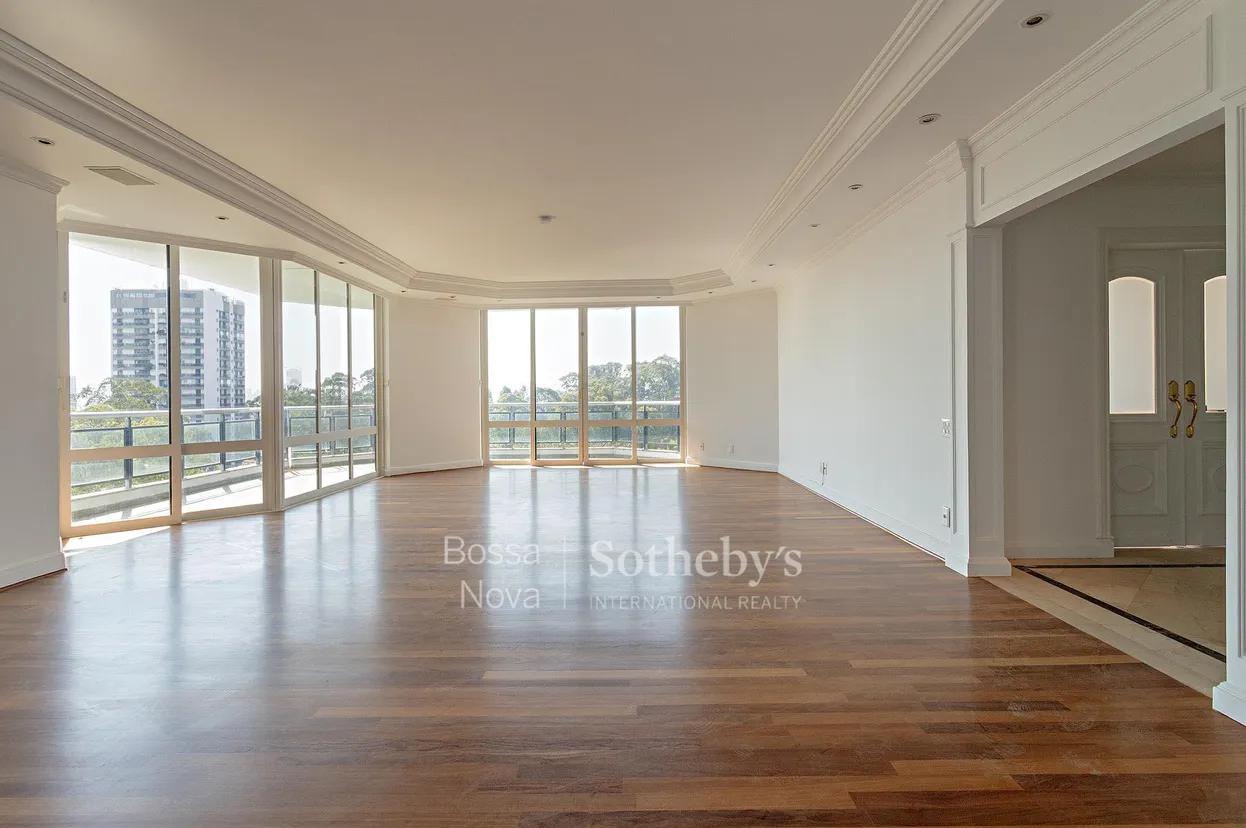 Apartamento em condomínio projetado por Isay Weinfeld, com paisagismo de Renata Tilli. São cinco suítes amplas, quatro vagas de garagem e áreas integradas com iluminação natural, incluindo salas de estar, jantar e TV/escritório, conectadas a varanda com vista para o verde. A cozinha e a lavanderia estão equipadas, e todos os ambientes contam com armários planejados. O condomínio oferece piscinas, quadras de tênis, spa, academia e sala de leitura, cercado pela Mata Atlântica e com fácil acesso a escolas como Chapel, Suíço-Brasileiro, Lourenço Castanho, Maple Bear e Rudolf Steiner.