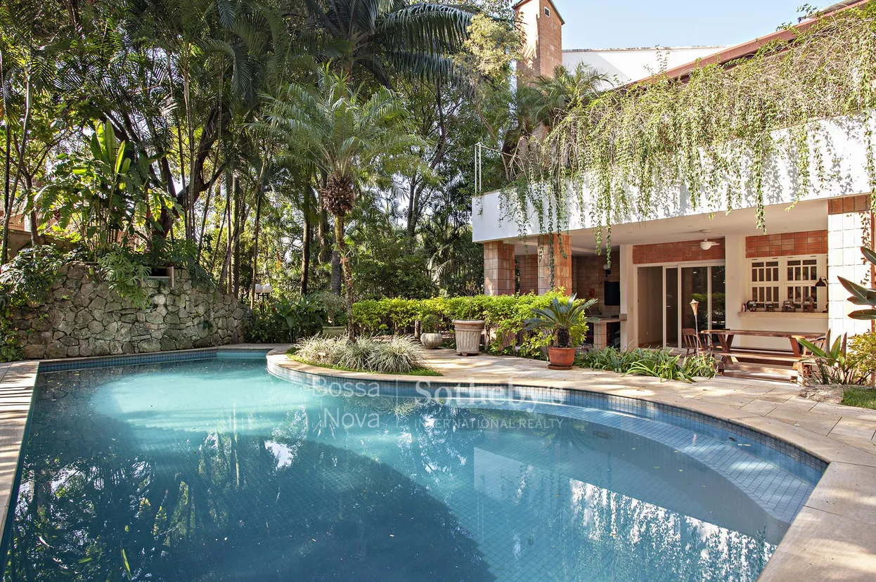 Localizada em rua tranquila e reservada próximo da Escola Waldorf Rudolf Steiner. Casa em amplo terreno, repleto de área verde envolvendo a residência com piscina privativa aquecida e varanda com churrasqueira. Espaçoso living com terraço integrado ao jardim. No piso superior, quatro suítes, sendo a máster com banheiros Sr. e Sra. Conta com armários de qualidade Ornare e Kitchens. Garagem para quatro veículos, aspiração central e sistema de segurança.