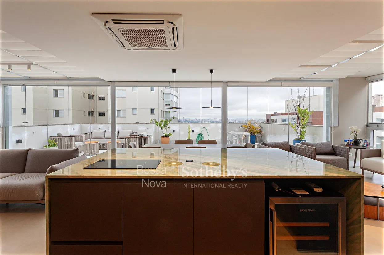 Em edifício contemporâneo e bem localizado, esta cobertura duplex com projeto de 2023 apresenta planta equilibrada e acabamentos atuais. No piso inferior, a área íntima é composta por três suítes iluminadas, com marcenaria sob medida e banheiros modernos. A cozinha funcional, equipada e com excelente marcenaria, conecta-se à área social de forma fluida. No pavimento superior, o destaque é a área gourmet com churrasqueira, bancada ampla e espaço para mesa e estar ao ar livre, ideal para receber. O imóvel conta com três vagas de garagem e infraestrutura predial moderna.
