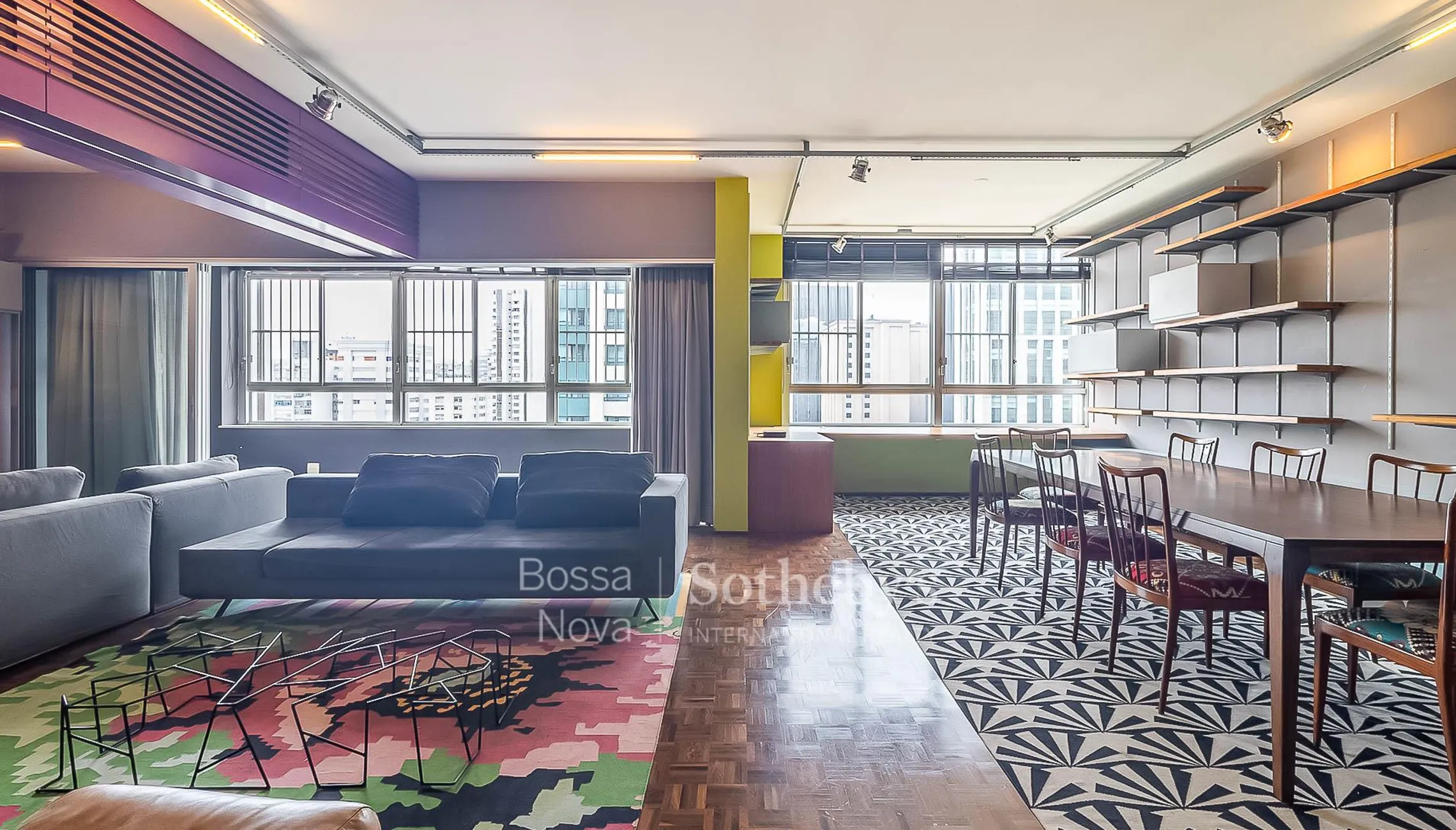 Apartamento com reforma autoral e amplas aberturas que favorecem a entrada de luz natural ao longo de todos os ambientes. Os grandes vãos envidraçados percorrem as fachadas e reforçam a sensação de amplitude, enquanto a varanda se integra à área social e se conecta à paisagem urbana. O projeto, assinado pelo escritório SuperLimão, combina cores, texturas e soluções contemporâneas, com uma planta redesenhada para maior fluidez entre os espaços, contemplando sala de jantar ampla e cozinha aberta integrada ao living. Na área íntima, há dois dormitórios espaçosos, ambos com closet e terraços, proporcionando conforto e privacidade. A suíte principal conta com banheiro equipado com duas pias e dois chuveiros. Um imóvel que alia arquitetura autoral, funcionalidade e integração dos ambientes em um contexto urbano consolidado.