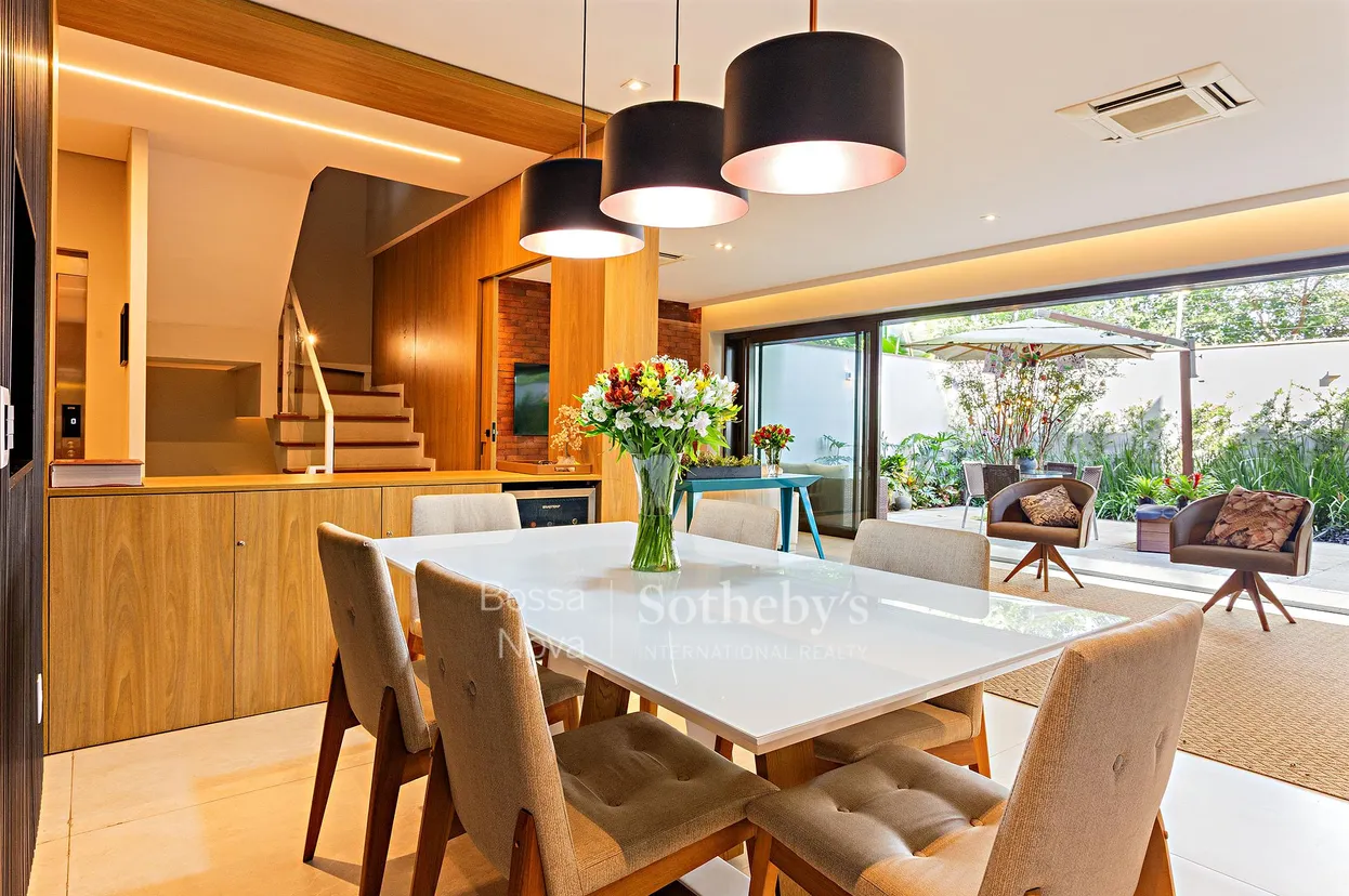 Esta casa em condomínio apresenta arquitetura contemporânea, circulação funcional e integração equilibrada com a natureza. Distribuída em três pisos conectados por elevador, oferece ambientes amplos e climatizados. No primeiro piso, o living se destaca pela amplitude e iluminação natural, em conexão fluida com a cozinha e o jardim, criando um espaço ideal para convivência e recepção. No segundo piso, a área íntima reúne duas suítes e dois dormitórios que compartilham um banheiro, todos projetados para garantir privacidade, sendo que algumas suítes possuem varanda voltada para uma praça. No terceiro piso, o lazer ocupa um pavimento dedicado à piscina, ao espaço gourmet e à sauna, todos climatizados. A residência reúne funcionalidade, conforto e localização conveniente para quem busca morar com tranquilidade em um condomínio bem estruturado.