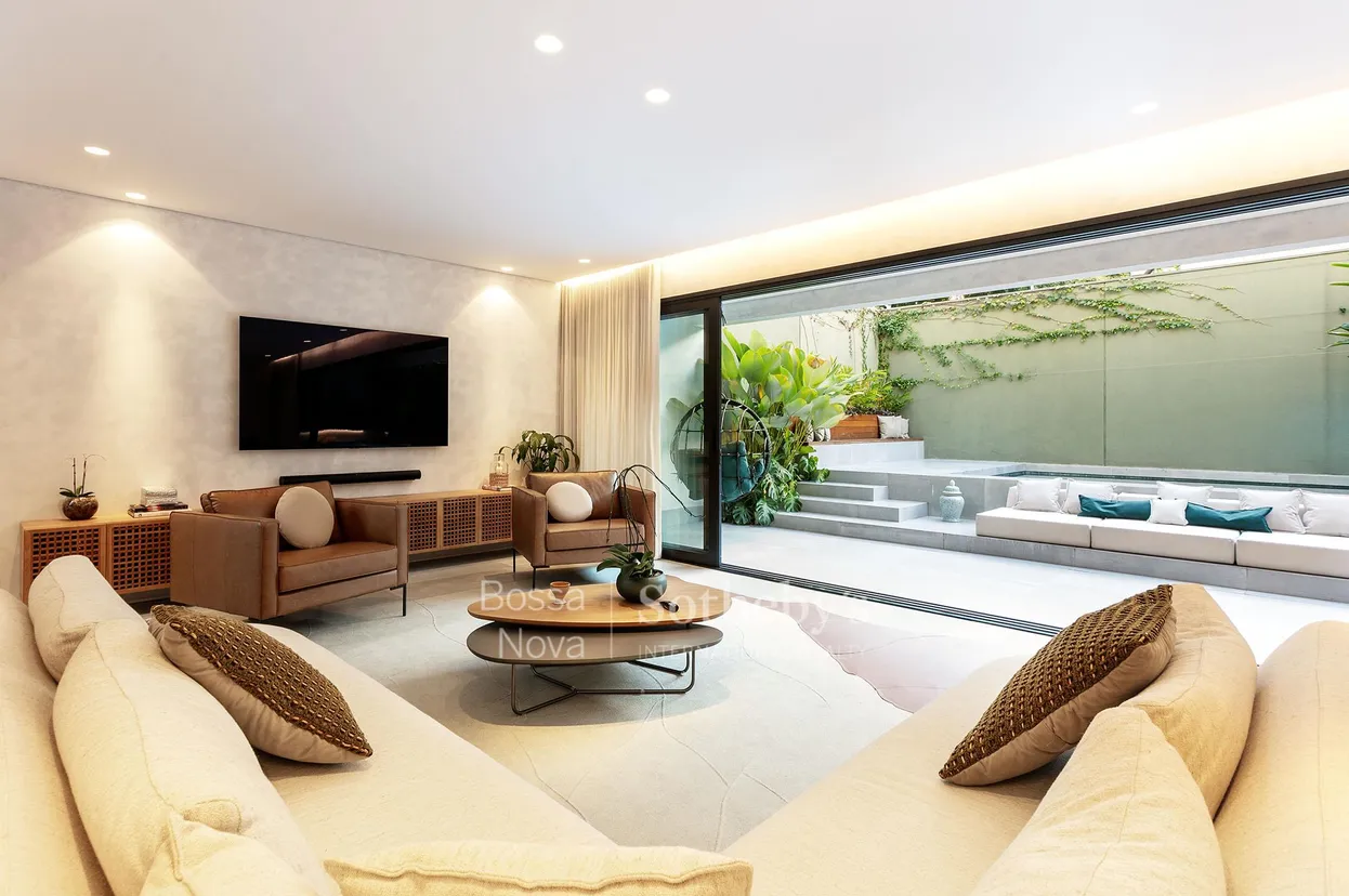 Casa projetada por arquiteto com design minimalista em condomínio de alto padrão no Brooklin, em região repleta de comércio e serviços. No pavimento térreo há amplo living integrado à cozinha, lavabo, varanda, piscina e jardim com paisagismo. O piso superior contempla sala íntima e três suítes. Há ainda um rooftop com vista para zona residencial e um lounge gourmet completo, com ofurô, solarium e lavabo. Dispõe de quatro vagas de garagem no subsolo, mais área de serviço e depósito. Venda mobiliada.