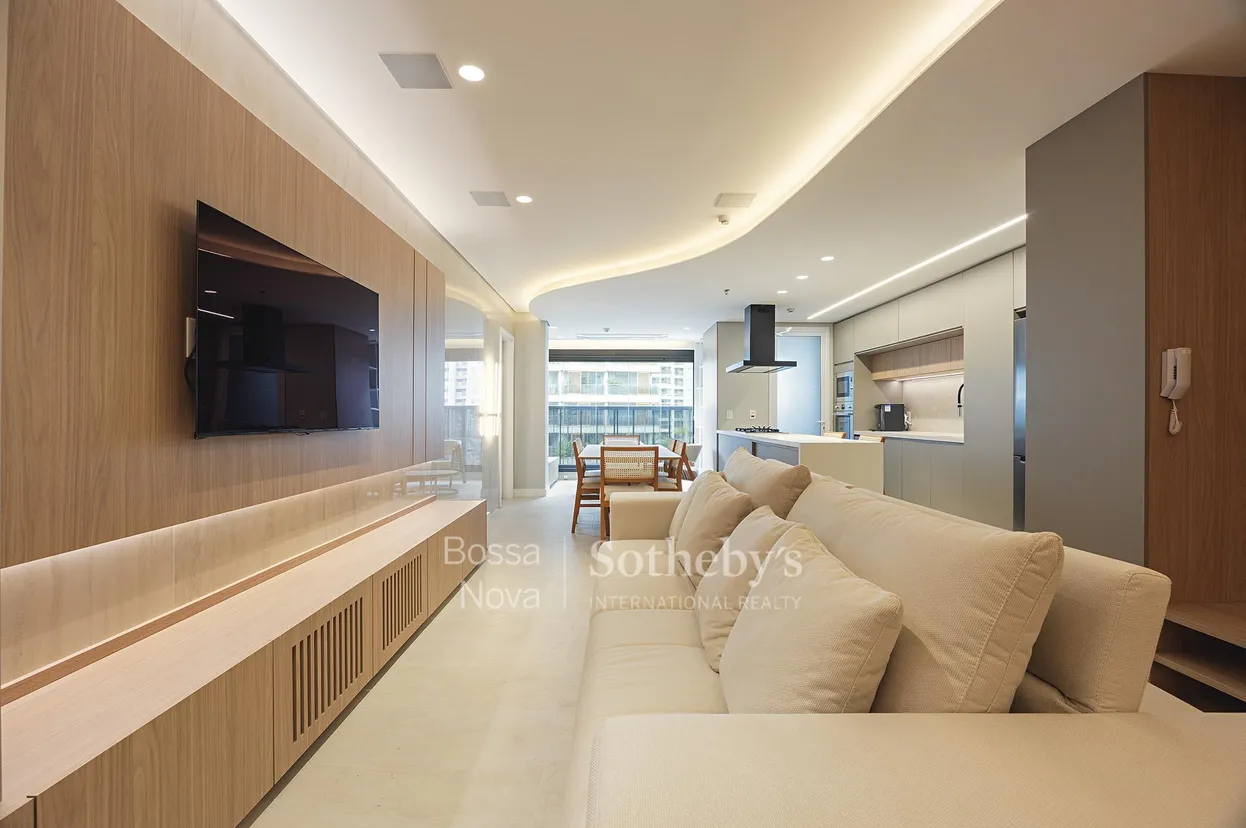 Apartamento mobiliado e decorado com projeto do escritório Grecco, situado em condomínio contemporâneo com infraestrutura completa. A área social conta com ambientes integrados, onde a varanda envidraçada foi incorporada ao living e à cozinha, ampliando a sensação de espaço e luminosidade. O projeto inclui sistema de automação que controla climatização, iluminação, persianas, áudio e vídeo. Na área íntima, são duas suítes bem distribuídas e um escritório, que complementa a funcionalidade da planta. A localização é estratégica, com fácil acesso às estações de metrô, aos shoppings Morumbi e Cidade Jardim, além da proximidade ao centro empresarial da Berrini e a uma ampla variedade de restaurantes e serviços. O condomínio oferece diversas opções de lazer, como quadra de tênis de saibro, squash, quadra interna de futebol, academia equipada, sala de pilates, sauna, salão de festas e um rooftop com lounge pub. Dispõe de duas vagas de garagem. Venda mobiliado.