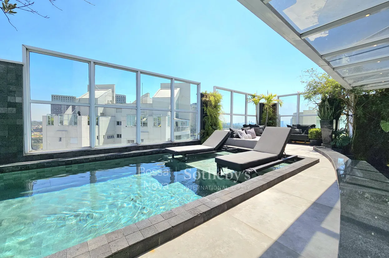 Localizada em condomínio moderno composto por três torres, esta cobertura duplex combina amplitude e privacidade com uma vista aberta da cidade. O pavimento inferior abriga a área social, com living integrado à sala de TV e amplas suítes que garantem conforto e praticidade no dia a dia. No mezanino, há um segundo living voltado para o espaço gourmet e para o terraço com piscina, ideal para momentos de convivência ao ar livre. O condomínio oferece infraestrutura de lazer completa, com piscinas coberta e descoberta, solarium com spa e hidromassagem, saunas e sala de massagem, playground, brinquedoteca, quadra poliesportiva, salão de festas e de jogos, além de espaço gourmet. A localização é estratégica, próxima ao Jockey Club, às avenidas Nações Unidas e Roque Petroni Júnior, e à Rua Funchal, com fácil acesso a serviços e conveniências da região.