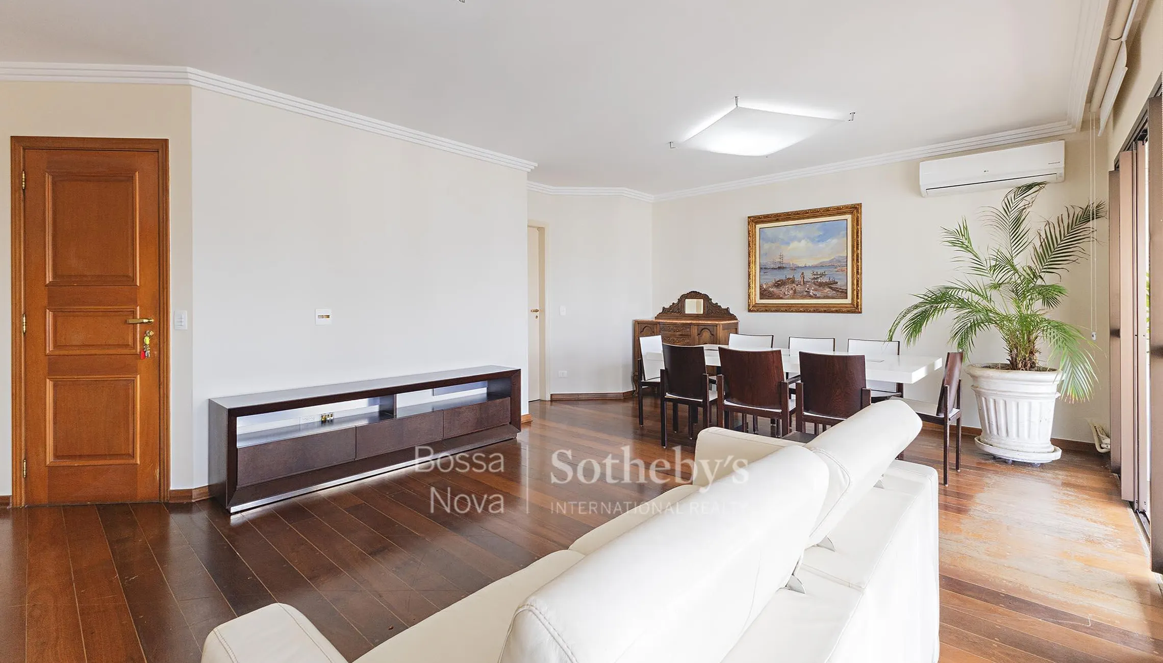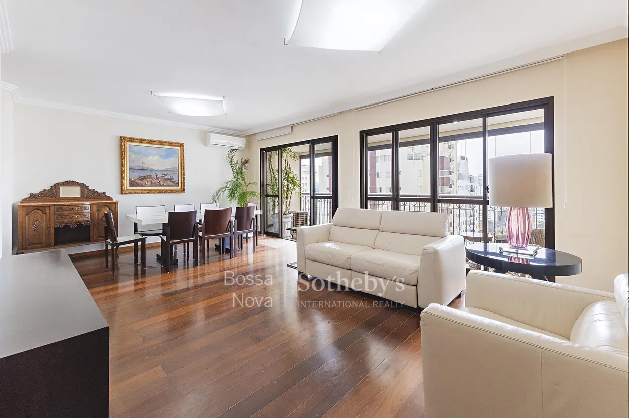 Este apartamento em andar alto está localizado em região que permite fácil acesso a pé a comércio e serviços do bairro. O imóvel é mobiliado, bem iluminado e ventilado, com living para dois ambientes, sala de estar e jantar integradas ao terraço com vista, piso em tábua de madeira e ar-condicionado. Na área íntima, as suítes contam com armários planejados, e a cozinha conta com copa funcional. O empreendimento dispõe de infraestrutura completa com jardim, guarita blindada e opções de lazer que incluem academia, brinquedoteca, playground, quadra poliesportiva e piscinas adulto e infantil climatizadas.