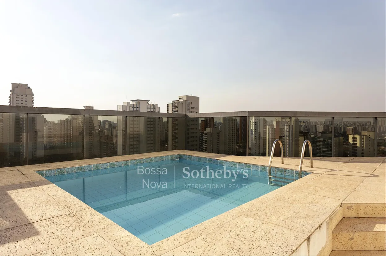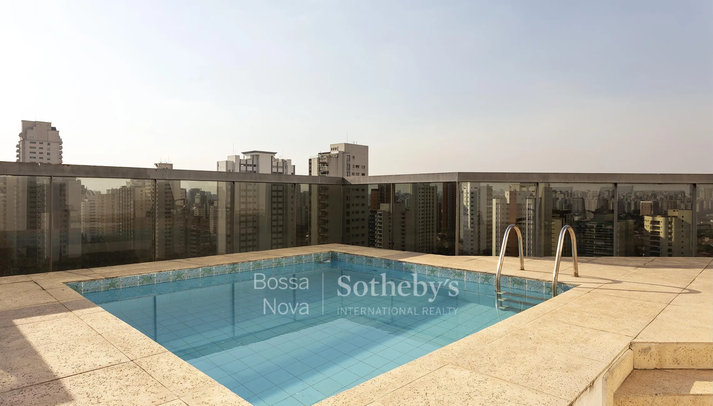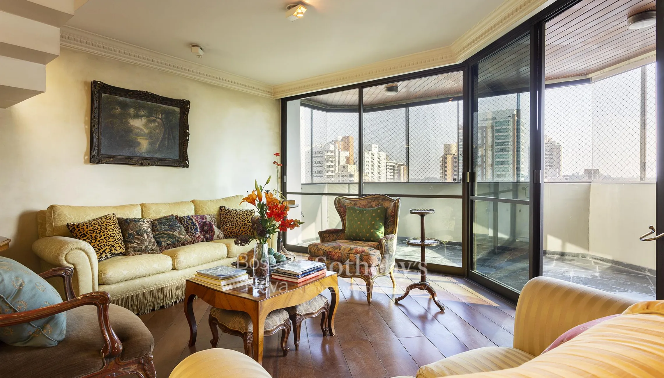 Cobertura duplex com potencial para modernização, em localização privilegiada. A parte inferior é composta por um hall privativo, living com lareira e varanda envidraçada, sala de jantar, lavabo, cozinha clara e espaçosa, louceiro, despensa, área de serviço ampla e arejada e dependência de funcionários completa. Na área íntima são três suítes, uma delas com varanda. A parte superior conta com uma sala ampla e envidraçada para até três ambientes, lavabo, a quarta suíte, piscina, solarium, sauna e banheiro da piscina. O imóvel possui três vagas fixas e depósito. Prédio com piscinas adulto e infantil, salão de festas e jardim arborizado.