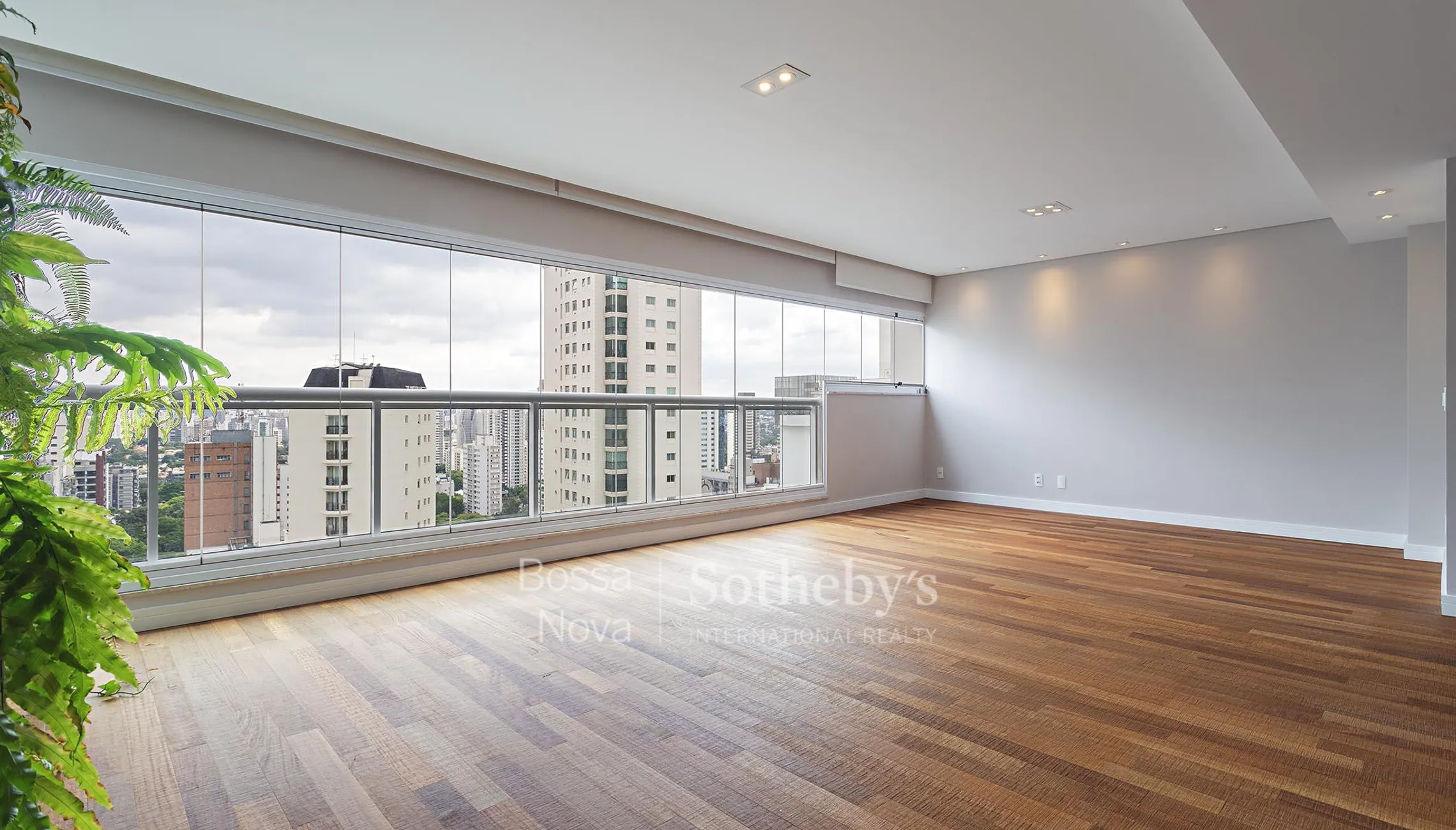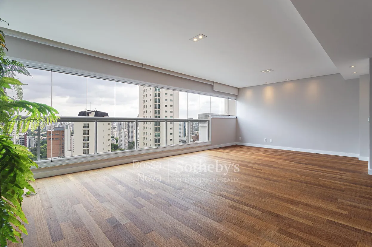 Este apartamento está situado em área bem posicionada do Campo Belo e oferece vista permanente que valoriza a área social, onde a varanda envidraçada se integra aos ambientes amplos e favorece a iluminação natural. O living admite diferentes composições e se conecta ao espaço de refeições, destacando o jardim vertical assinado por Marcos Caleiro, o piso de madeira de demolição Indusparquet e a marcenaria Florense que se estende por todo o imóvel. A área íntima é composta por três suítes, sendo a principal com banheiro para ele e ela, closet, cofre e cortinas rolo da Hunter Douglas, além de contar com janela antirruído da Atenua Som. Há ainda uma sala íntima generosa que pode ser transformada em uma quarta suíte conforme necessidade. A cozinha é equipada com forno elétrico, micro-ondas e lava-louças Brastemp, enquanto a área social dispõe de adega Art des Caves para duzentas garrafas e lareira ecológica Contraflama que completa o ambiente. O condomínio apresenta infraestrutura de lazer com piscina, brinquedoteca e sala de ginástica, oferecendo praticidade ao cotidiano.