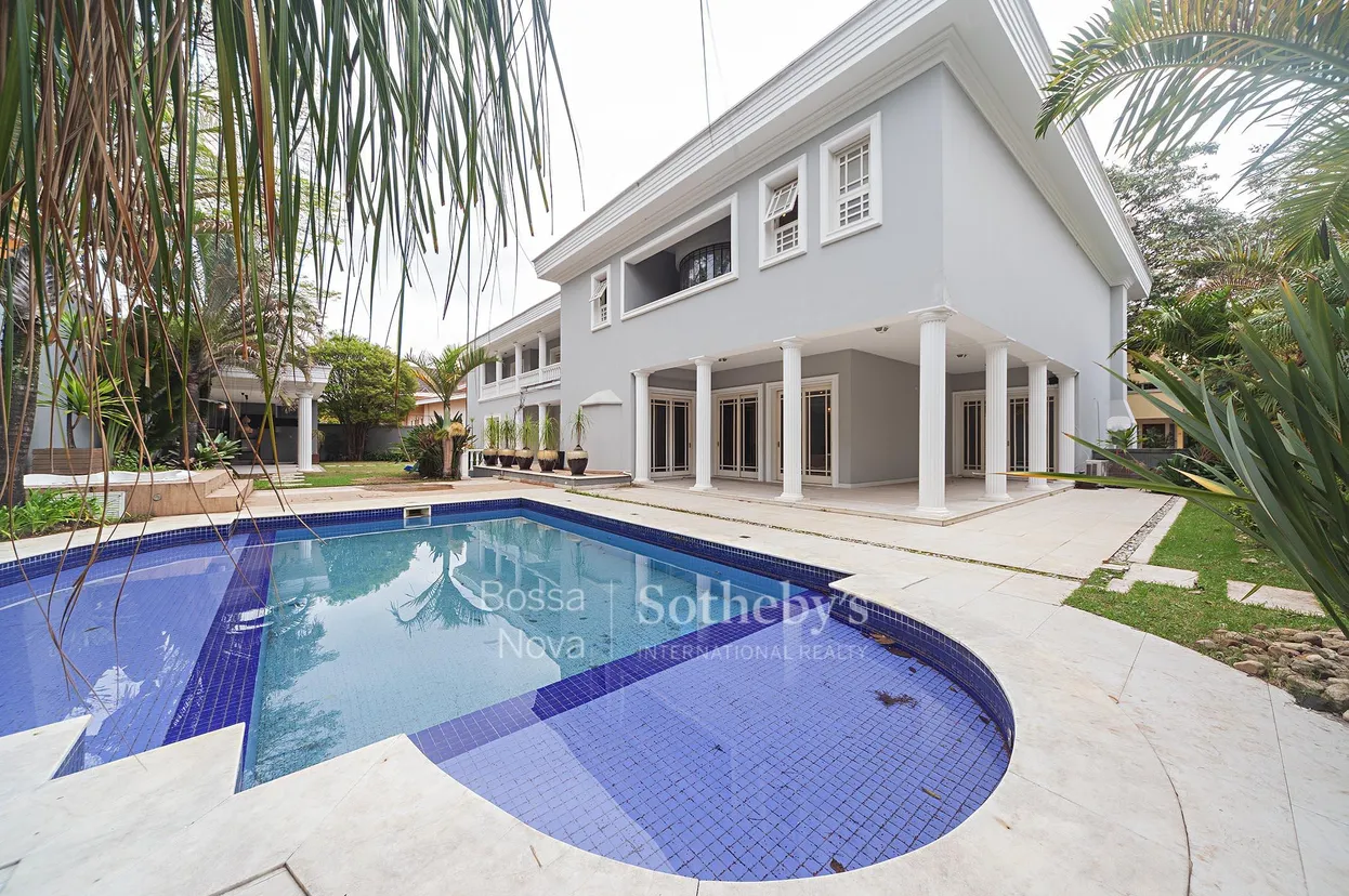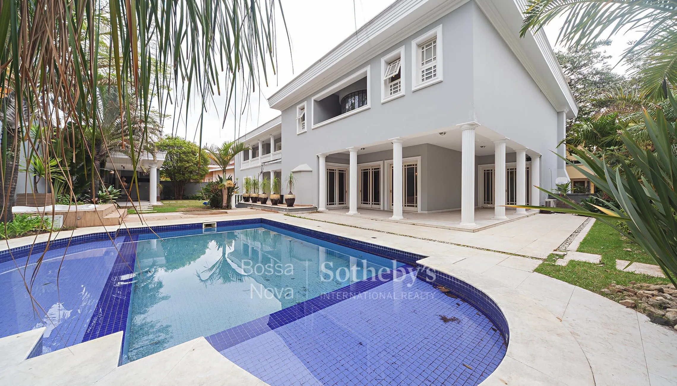 Localizada em condomínio com segurança especializada, próxima ao Clube Paineiras e ao Shopping Cidade Jardim, com fácil acesso à ponte Cidade Jardim, esta residência se destaca pela imponência de sua arquitetura e pelos acabamentos refinados. O hall de entrada com pé-direito duplo e piso em mármore dá as boas-vindas a ambientes sociais amplos, compostos por living com lareira, sala de jantar com apoio de armários planejados, home theater, escritório e sala de almoço. A cozinha, equipada com ilha central e marcenaria planejada, alia funcionalidade e estilo. A área externa conta com piscina aquecida, hidromassagem, paisagismo e espaço gourmet generoso, ideal para receber. No pavimento superior está a suíte máster, que dispõe de escritório, sala íntima, dois closets, dois banheiros e um espaço de banho com hidromassagem e jardim, além de rouparia e copa de apoio. Todas as suítes possuem ar-condicionado e varanda. No piso inferior há salão de jogos com mesa de snooker, adega, lavabo e academia, além de sauna, dependência para funcionários, depósito com fechadura biométrica e casa de caseiro com dependências completas. A garagem comporta oito veículos.