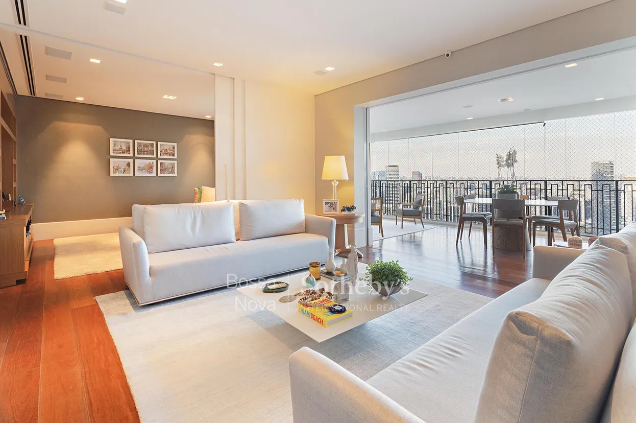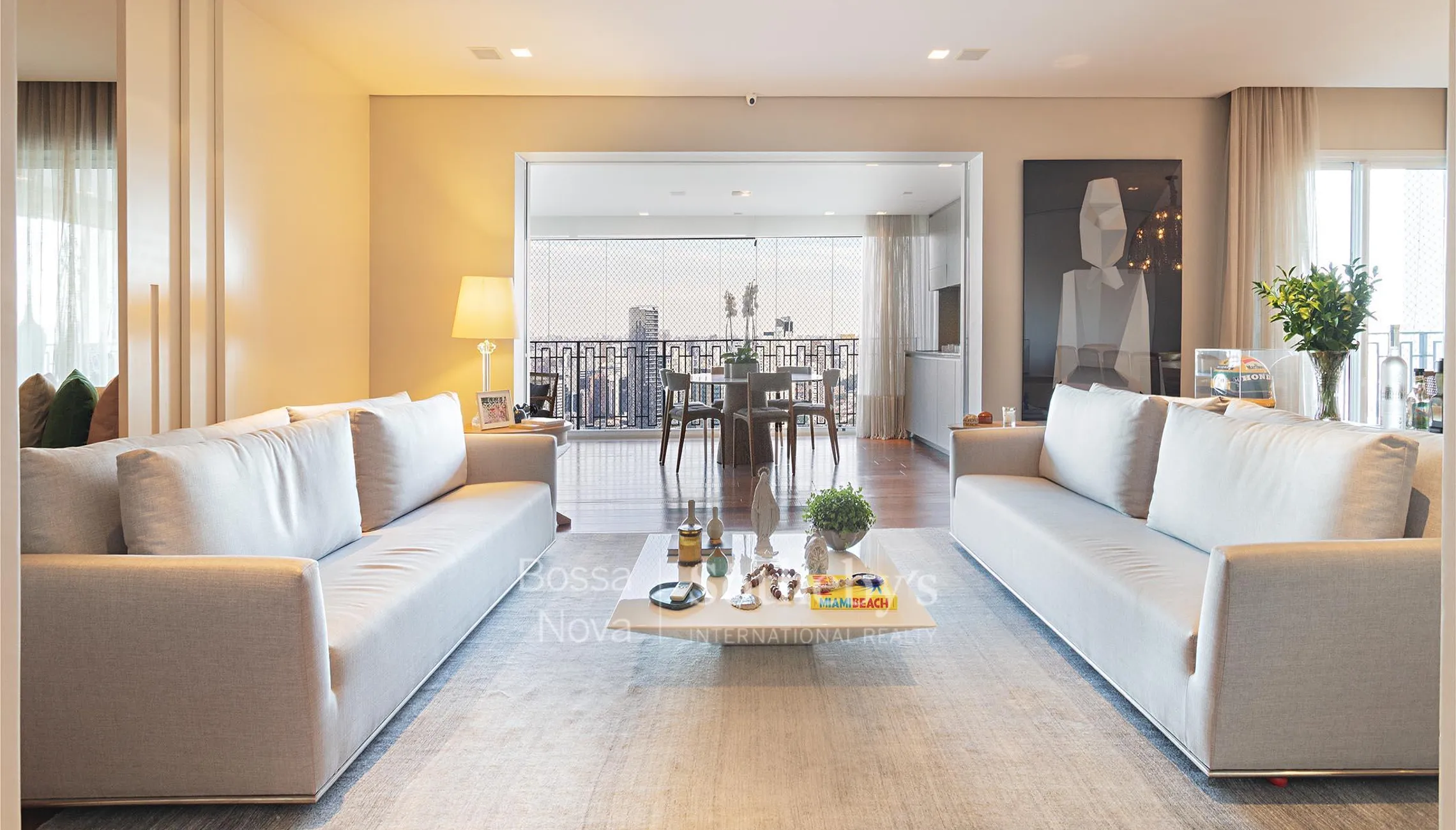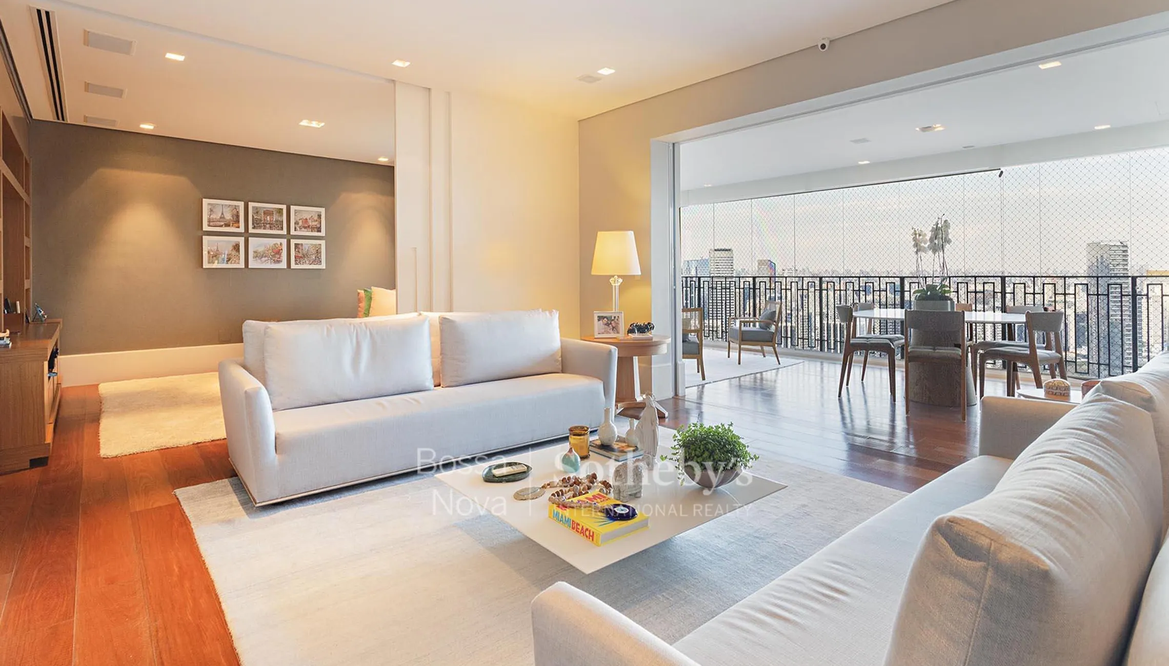 Com vista panorâmica para o skyline, este apartamento está em um condomínio com paisagismo assinado por Maria João D’Orey e oferece integração entre ambientes e acabamentos sofisticados. O projeto conta com hall privativo, amplo living com piso em mármore italiano, home theater e espaços de estar e jantar conectados à varanda envidraçada. A área íntima dispõe de três suítes com closets, rouparia e suíte principal com walk-in closet. A cozinha planejada se integra à copa e à despensa. O condomínio, anexo ao shopping Cidade Jardim, possui extensa área verde de 74.000 m², lazer completo e segurança especializada 24 horas.