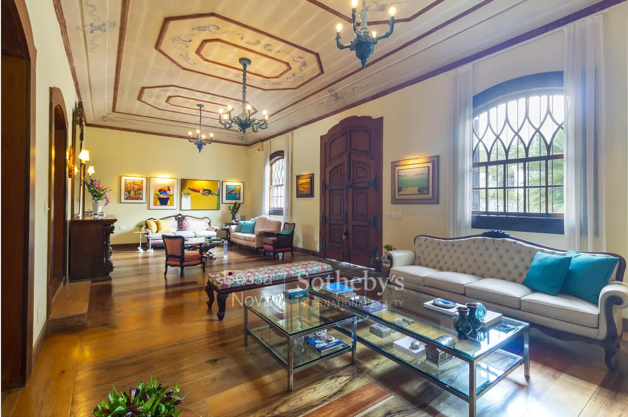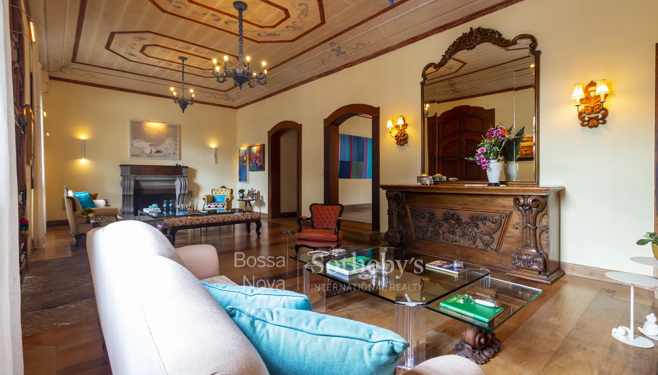 Casa com estilo fazenda com ótimo construtivo, onde cada ambiente conta com detalhes e acabamentos com a sensação de estar fora de São Paulo. Possui living amplo harmonizado pelo pé-direito alto para três ambientes com lareira, sala de jantar em um segundo ambiente que dá acesso a um o pátio central com uma fonte de parede. Copa ampla individualizada da cozinha com espaço e muito funcional e conta com despensa. Área de serviço e dois quartos de funcionários. Na área íntima, são quatro suítes, a máster conta com dois closets e um espaçoso banheiro com banheira e jardim. Dispõe de quatro vagas de garagem cobertas e jardim.