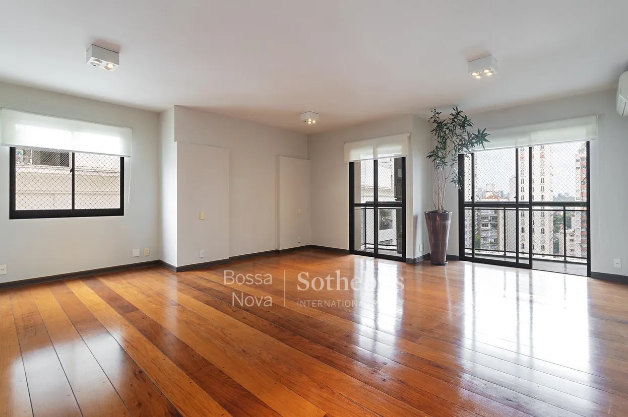 Este apartamento, com 212 m² de área útil, é o resultado da união de duas unidades, oferecendo planta ampla e bem distribuída. A área social conta com amplos ambientes de estar e varanda integrada, favorecendo a iluminação natural e a ventilação cruzada. São quatro dormitórios, sendo duas suítes, além de cozinha funcional e dependência de serviço. Localizado em andar alto, o imóvel desfruta de vista aberta e permanente. O condomínio dispõe de completa infraestrutura de lazer, com piscina, academia, playground e jardim bem cuidado. Como diferencial, os moradores têm acesso a um palacete tombado e restaurado, que integra os espaços de convivência do empreendimento. O apartamento conta com quatro vagas de garagem.