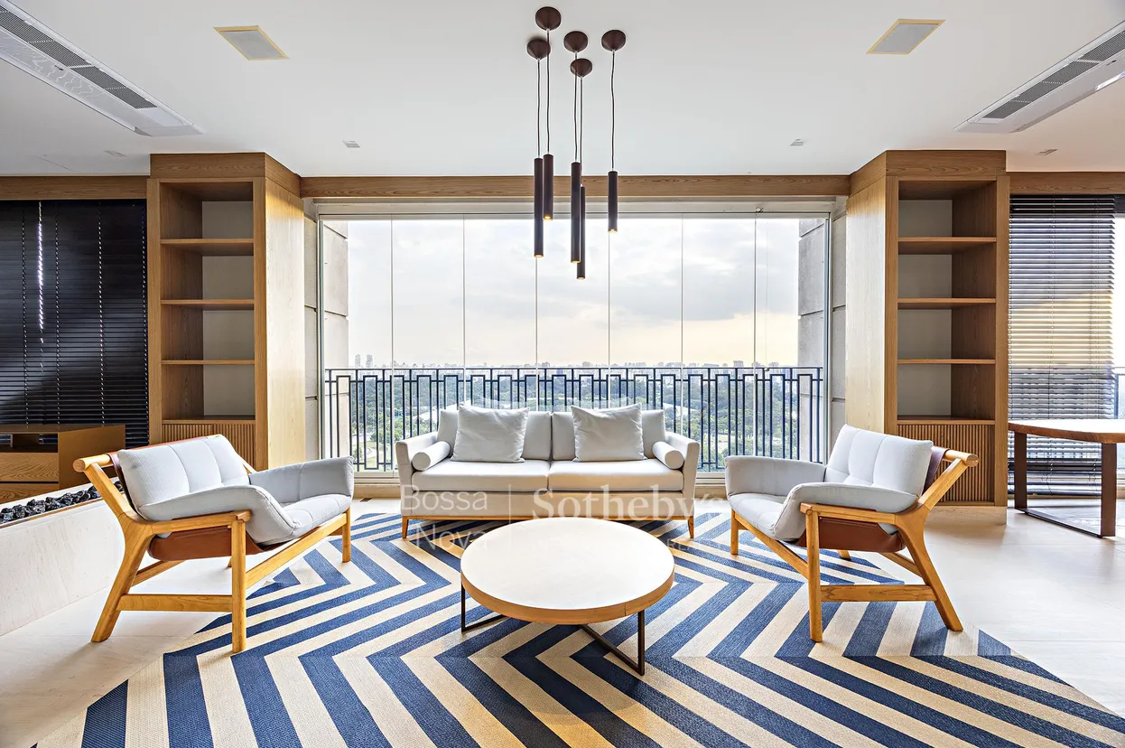 Apartamento localizado em região prestigiada de São Paulo, próximo ao Parque do Ibirapuera e ao Clube Círculo Militar. O projeto de interiores é assinado por Patricia Anastassiadis e o imóvel é totalmente automatizado. A área social é composta por living para vários ambientes, terraço envidraçado, sala de estar com lareira, sala de jantar, sala de almoço com adega para 400 garrafas, escritório e lavabo. A área íntima conta com três suítes com closet, sendo a principal com banheiro senhor e senhora e varanda ensolarada. O projeto de marcenaria é de alto padrão e há ar-condicionado instalado em todos os ambientes. A cozinha é moderna, equipada com eletrodomésticos Gorenje. O condomínio oferece lazer completo, piscina aquecida com raia de 25 metros, gerador que atende áreas comuns e todas as unidades, além de segurança 24 horas. O imóvel conta com seis vagas de garagem.