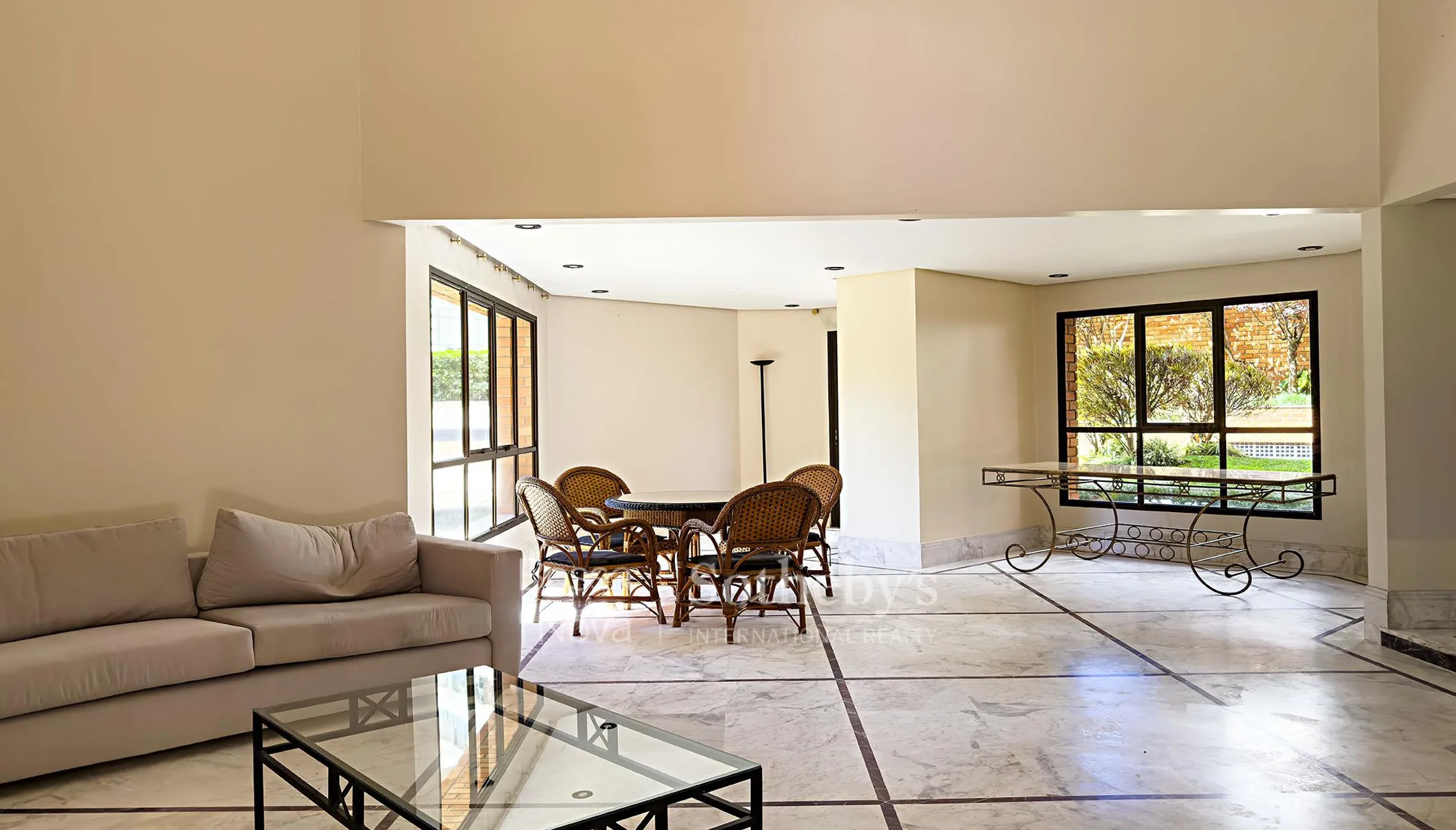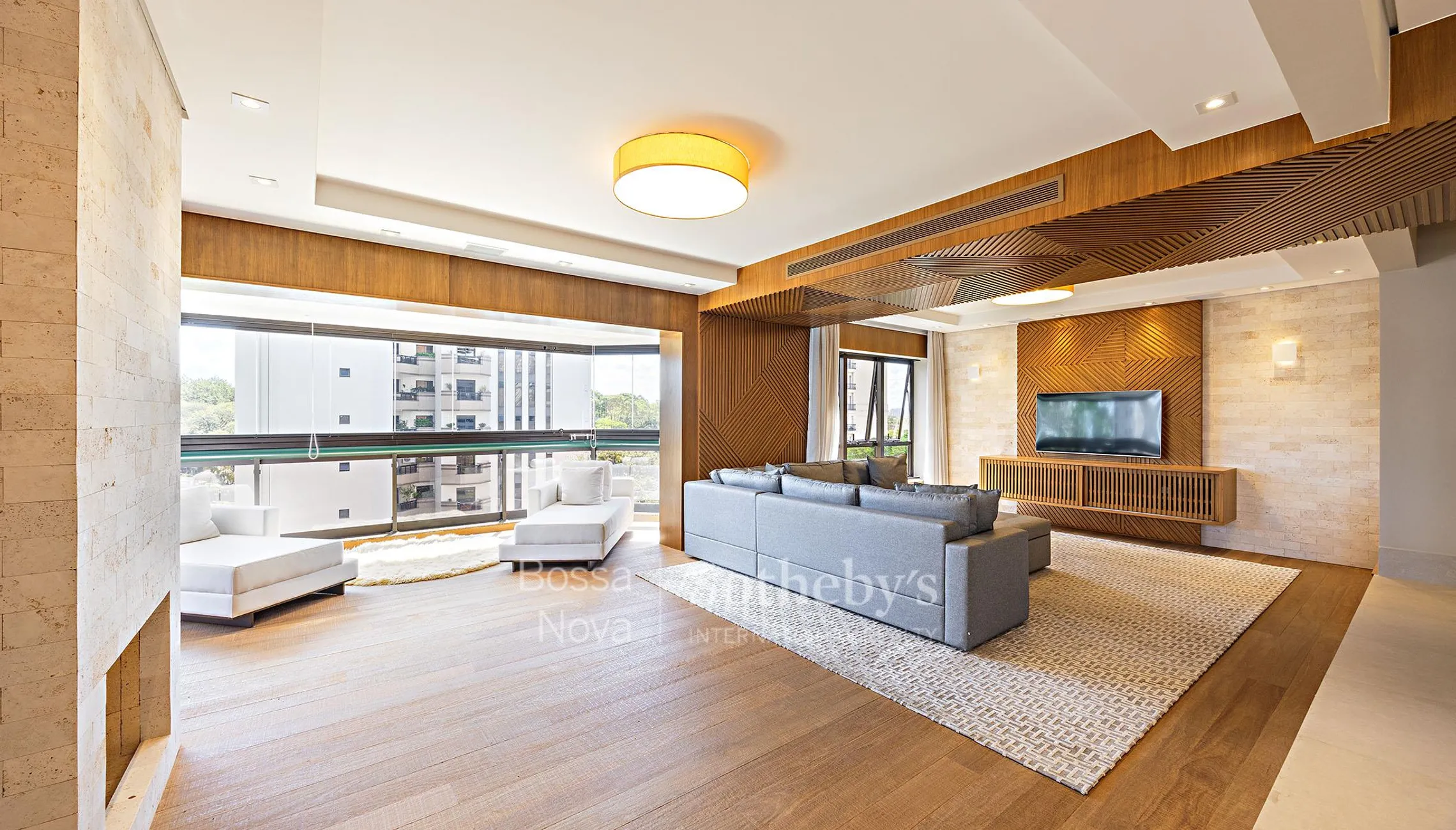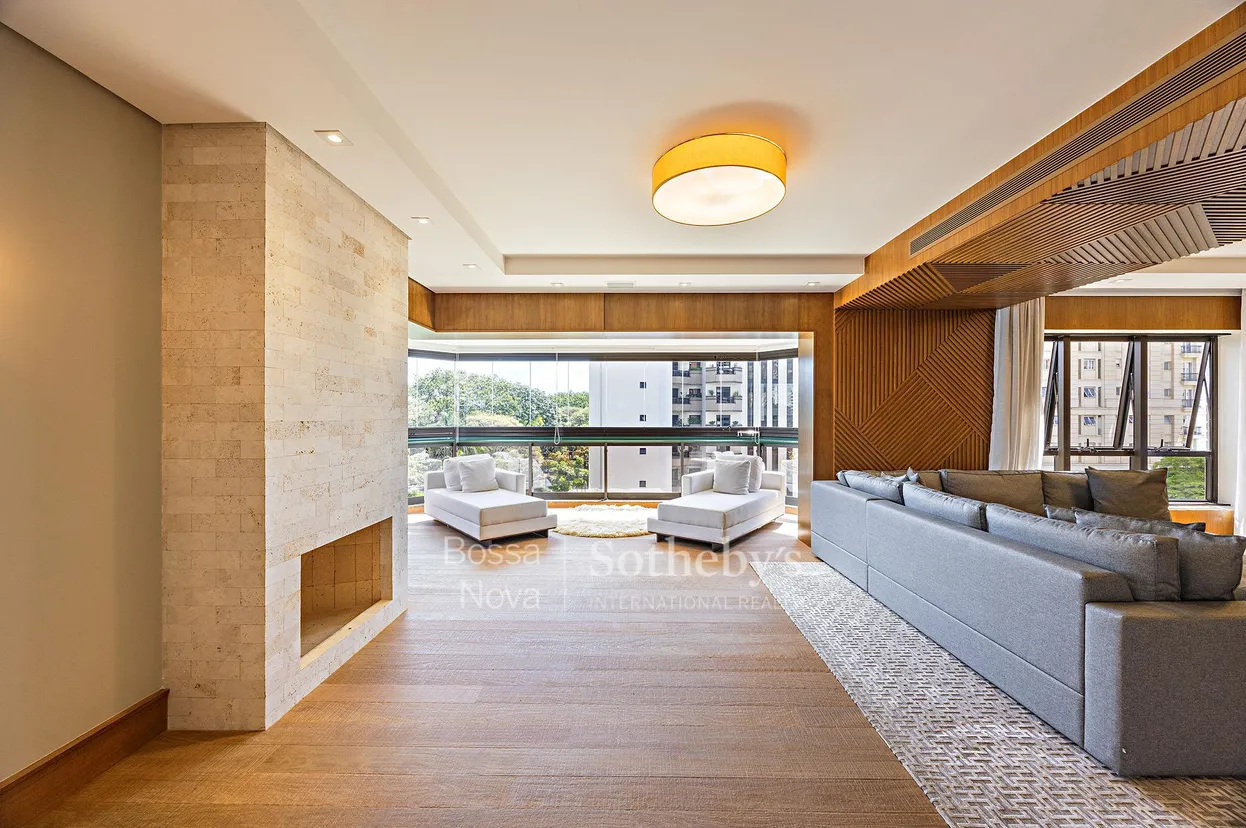 Apartamento reformado situado nas proximidades do Parque Ibirapuera, com planta que integra a sala à varanda e valoriza a entrada de luz natural. A área íntima dispõe de três suítes e o living ampliado favorece diferentes composições. A vista alcança as copas das árvores, trazendo sensação de amplitude. O imóvel conta com três vagas de garagem. O condomínio oferece piscina e salão de festas, além de estar em região com acesso a serviços e vias de circulação.