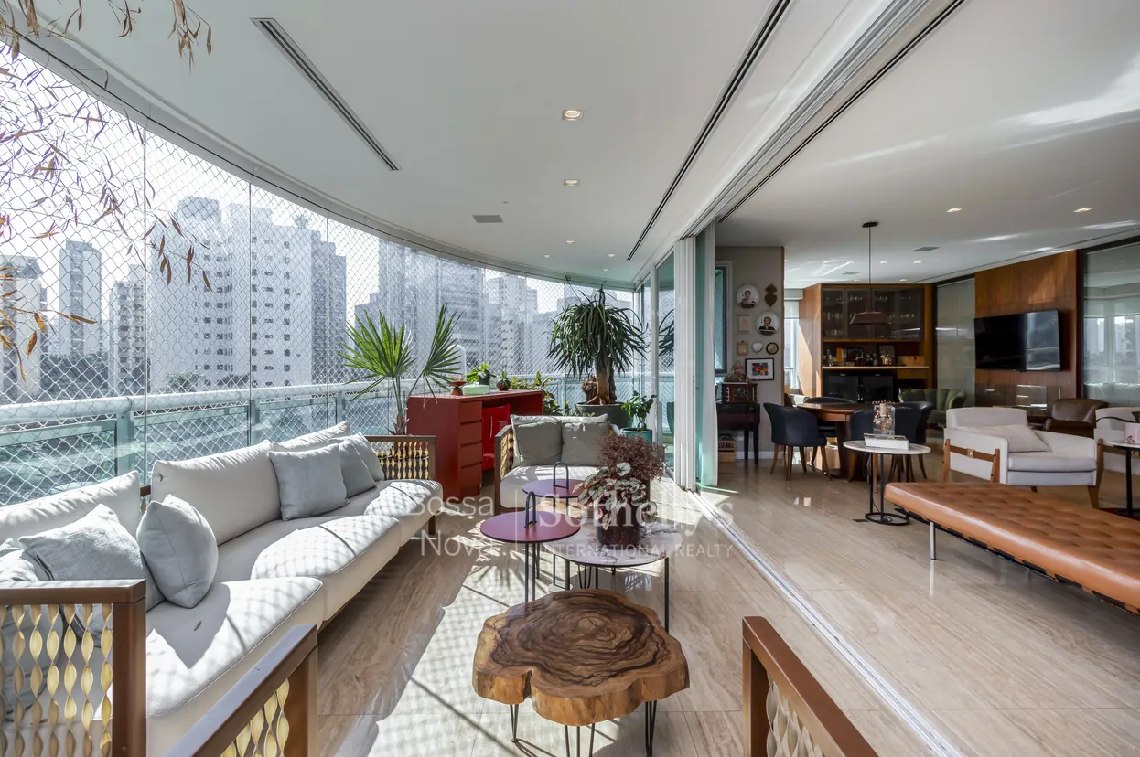 Amplitude e sofisticação definem este apartamento no Itaim Bibi, projetado por Carina Korman. O living possui uma atmosfera aconchegante e convidativa, com sistema de automação para iluminação e som. Elementos da mais alta qualidade marcam presença, como piso de mármore travertino romano, mesa de jantar em pedra ônix inteira e original, e marcenaria sob medida em freijó. Além disso, conta com quatro ótimas suítes e um escritório com tratamento acústico. Garantindo a segurança dos moradores, o imóvel apresenta portas blindadas, câmeras e elevadores com chave de travamento. Para completar, pode ser adquirido com a cozinha já totalmente equipada com eletrodomésticos Eletromec e duas adegas Art de Cave.