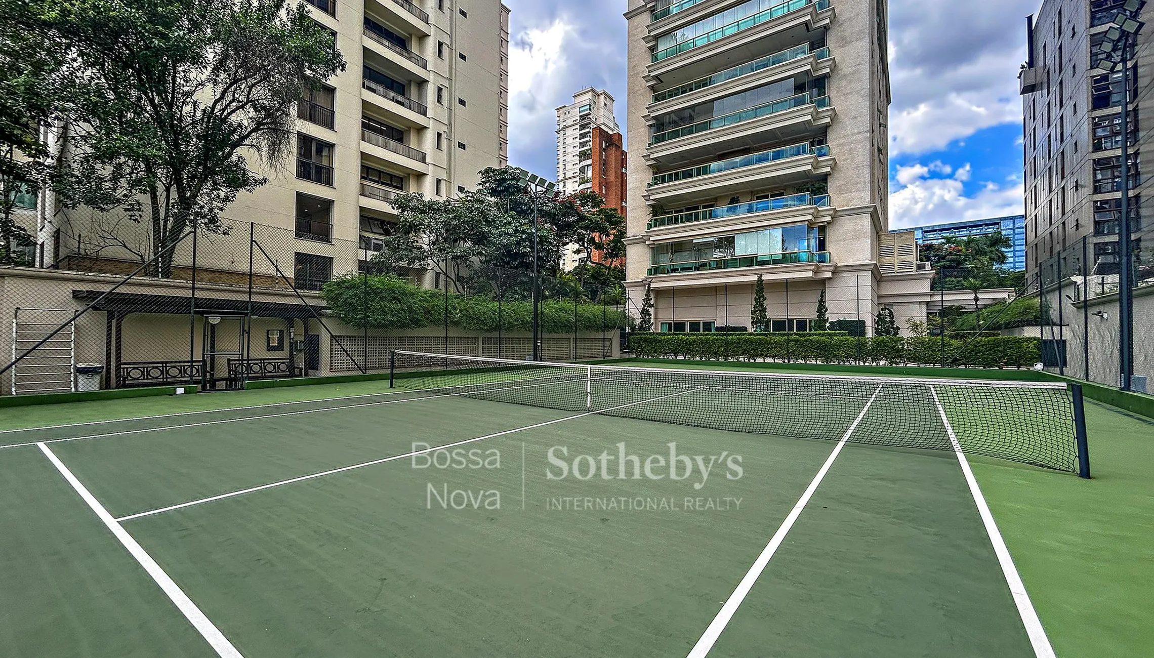 Localizado no coração do Itaim, este apartamento em andar alto se destaca pela vista permanente para o Parque do Povo e pelo projeto que valoriza integração e elegância. A área social ampla conta com pisos em mármore italiano e reúne os ambientes de estar, jantar e home theater, além de um terraço que se integra ao living, ampliando a sensação de espaço. A área íntima dispõe de quatro suítes, sendo a principal com dois walk-in closets e banheiros sr. e sra. O edifício oferece infraestrutura completa de lazer, com piscina aquecida com raia, academia, espaço de pilates, quadra de tênis e salão de festas. A localização é estratégica, próxima a restaurantes, shoppings e serviços do bairro.