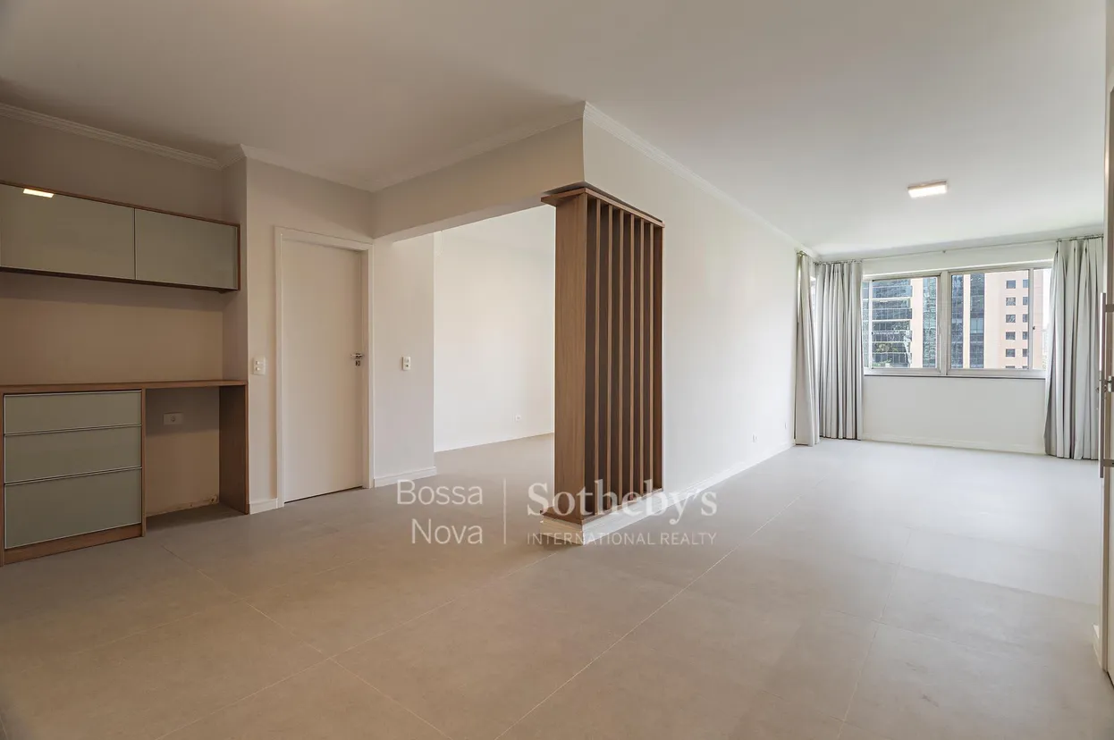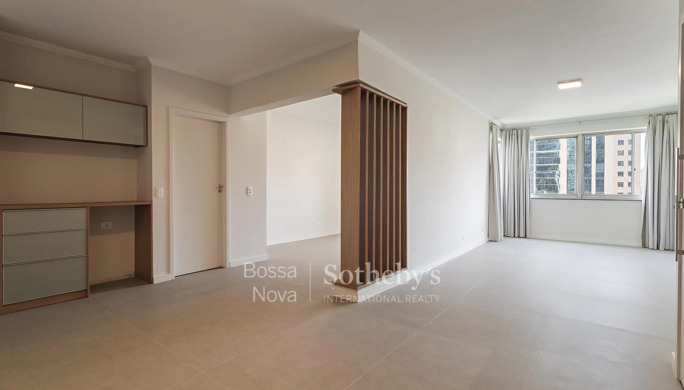 Este apartamento reformado próximo ao Parque do Povo e à Faria Lima conta com duas unidades por andar, oferece living ampliado após a integração do terceiro dormitório e criando espaços arejados com marcenaria atualizada. A área social se conecta à cozinha renovada, equipada com linha branca completa e armários planejados, enquanto a área íntima dispõe de dois dormitórios, sendo uma suíte e um quarto atendido por banheiro próprio. A área de serviço é separada e bem organizada, e a localização oferece acesso rápido às principais avenidas, além de serviços e facilidades no entorno.