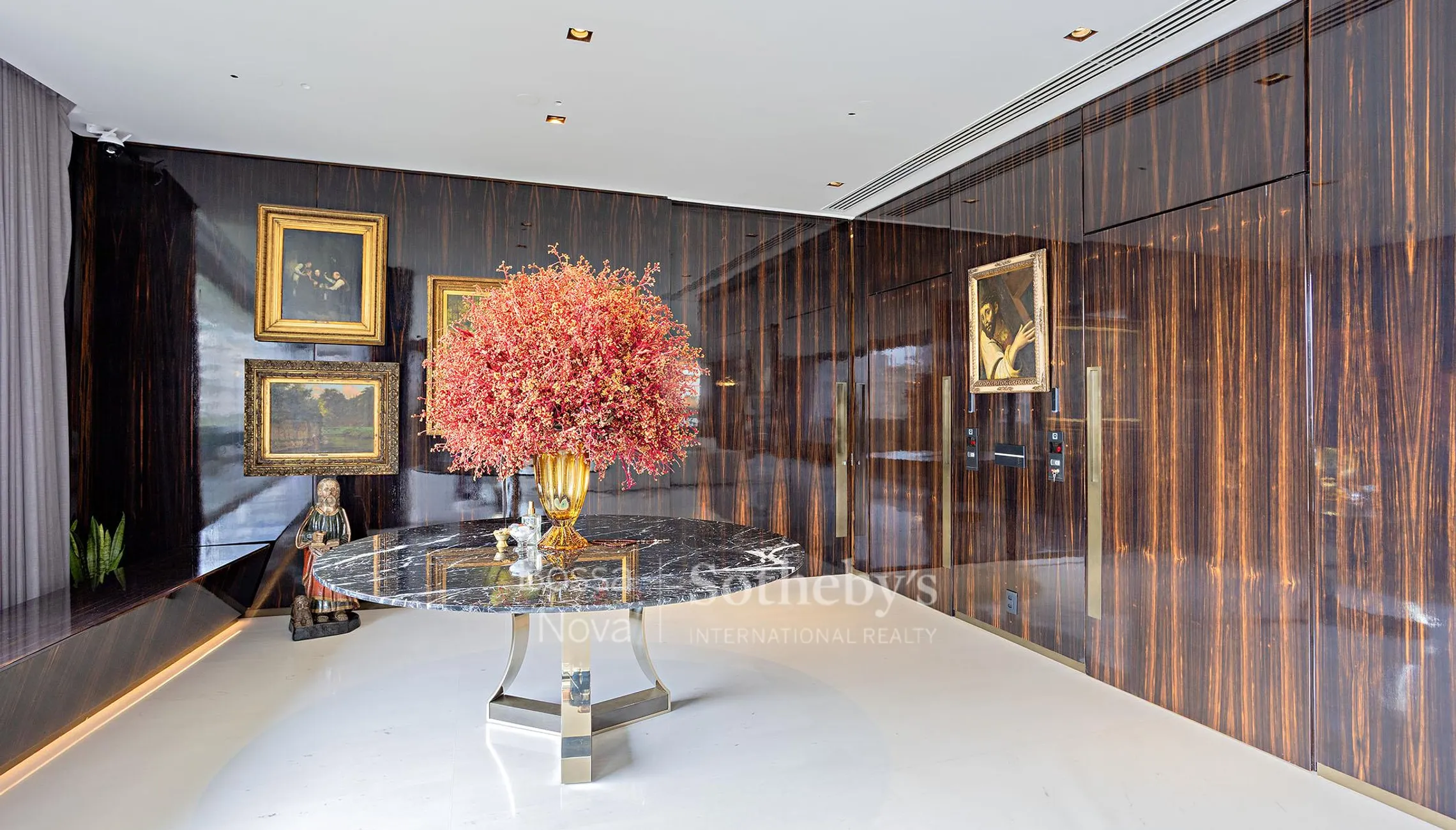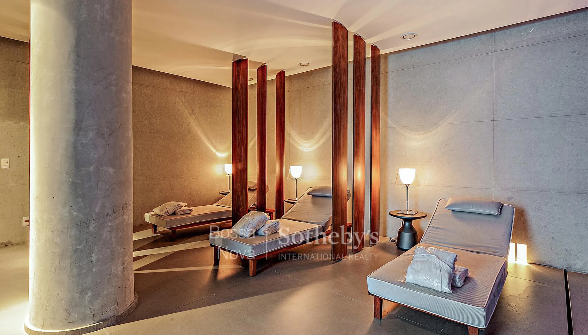 Assinado pelo arquiteto Daniel Libeskind, com áreas comuns projetadas por Dado Castelo Branco e interiores por Chris Hamoui, este edifício é um marco da arquitetura contemporânea. O apartamento, situado em andar alto, combina projeto autoral e acabamentos de excelência. O living integrado à sala de jantar e à sala de almoço, adaptada como espaço para vinhos e adega, valoriza a integração e a luminosidade natural proporcionada pelas janelas do chão ao teto. Há também um ambiente de home theater que complementa a área social, toda revestida em madeira ébano e mármore, criando uma atmosfera refinada e harmônica. A cozinha é equipada com armários Kitchen e louceiro, enquanto as três suítes contam com marcenaria Ornare. A suíte principal dispõe de banheiros e closets independentes, além de piso aquecido nos banheiros. A área de serviço é completa, com lavanderia, dois dormitórios de apoio e antessala. O condomínio oferece ampla infraestrutura de lazer e bem-estar, com academia, piscina coberta, spa com sauna seca e úmida, sala de pilates, espaço de massagem, cabeleireiro, biblioteca com sala de reuniões e brinquedoteca.