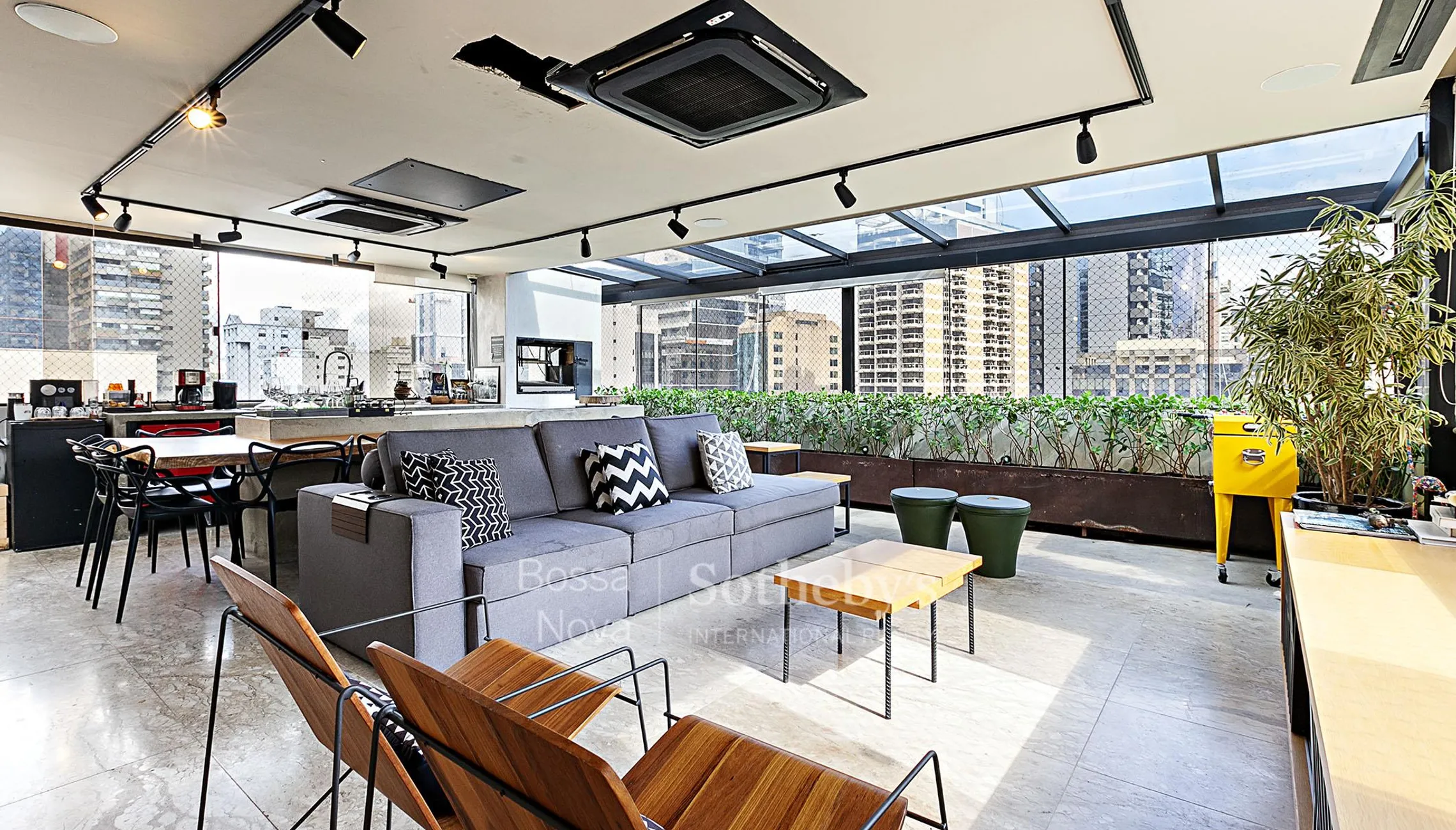 Cobertura triplex em localização cobiçada do bairro do Itaim, próximo a colégios, restaurantes e ao amplo corredor de serviços que a região oferece. Os ambientes são iluminados e ventilados, sendo que o primeiro piso conta com cozinha aberta integrada às salas de jantar e estar, além de duas suítes, uma delas master com amplo closet e janelas antirruído. No segundo piso há um escritório com banheiro, que pode ser utilizado como quarto de hóspedes, uma sala de estar e uma área gourmet equipada com churrasqueira e bancada de apoio. O terceiro piso é composto por terraço com solarium, chuveirão e jacuzzi. O apartamento é totalmente climatizado e dispõe de duas vagas de garagem.