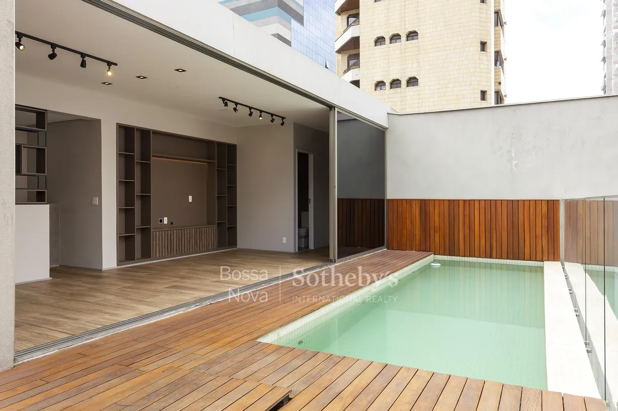 Cobertura mobiliada com design de Arthur Casas e piscina no Itaim