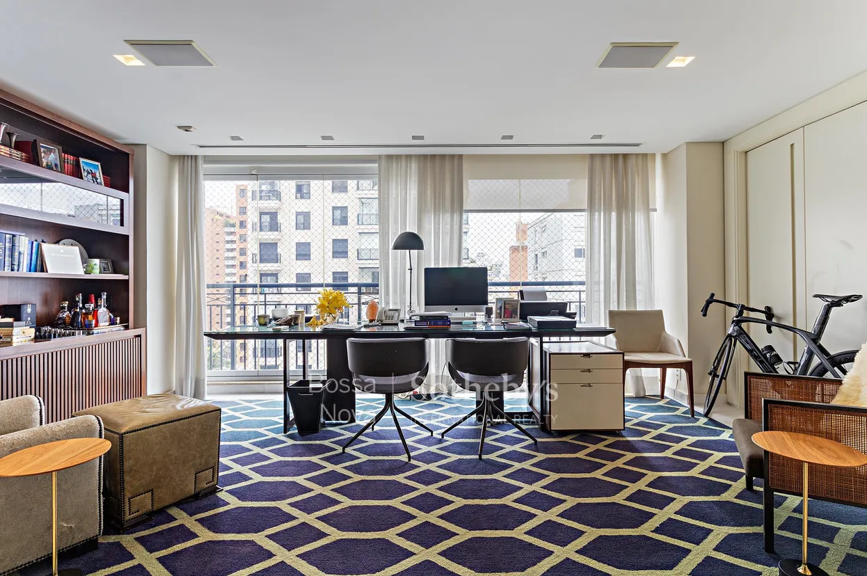 Apartamento em andar alto, localizado em um dos condomínios mais desejados da região, próximo aos melhores restaurantes, Oscar Freire e Club Paulistano. O edifício oferece infraestrutura completa, incluindo elegante entrada social, salão de festas, piscina com raia fechada e aquecida, academia, quadra de tênis, sauna com sala de relaxamento e gerador total. O living conta com varanda envidraçada, escritório, home theater, sala de jantar, sala de almoço e lavabo. Os acabamentos são de alto padrão, com ar-condicionado em todos os ambientes e armários Ornare. A área íntima dispõe de quatro suítes, sendo a suíte master com amplos banheiros senhor e senhora e um espaçoso closet. O imóvel conta ainda com duas dependências para funcionários, cinco vagas de garagem e um depósito privativo, proporcionando conforto e requinte em cada detalhe.